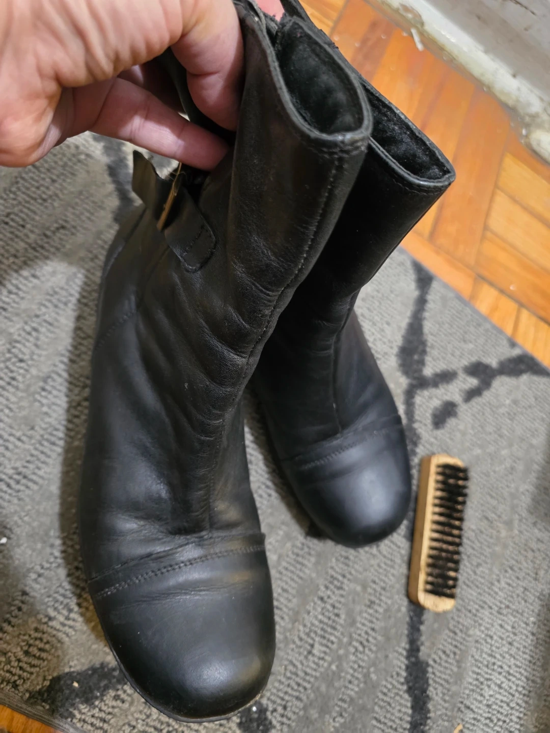 Great city winter snow boots. Warm and comfortable. MORE BOOTS to list. I always wax it with my waterproofing Nikwax. Look at last 2 photos...I cleaned the top leather with wax for you.:)