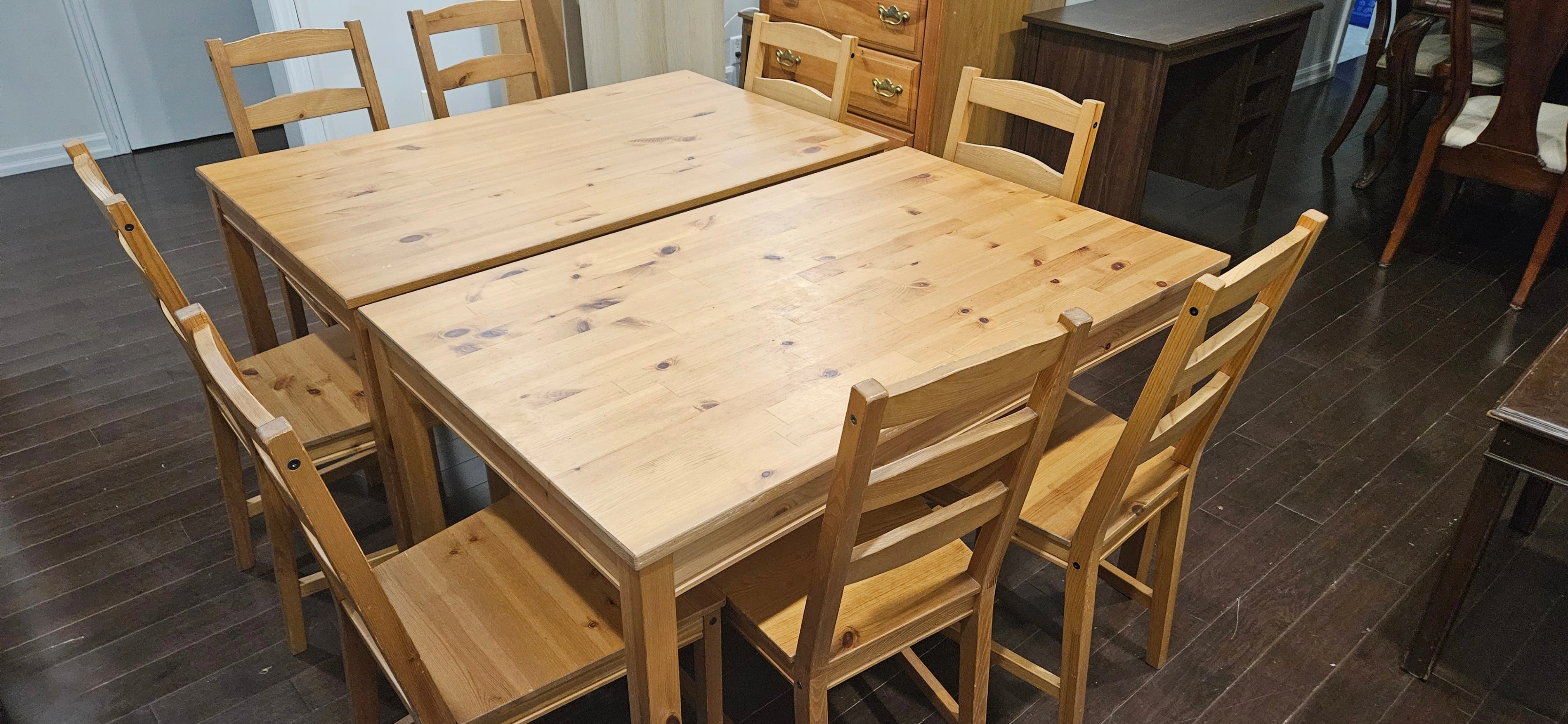 Two Identical Solid Wood excellent condition Dinning Table with 8 matching Chairs are for Sale.
