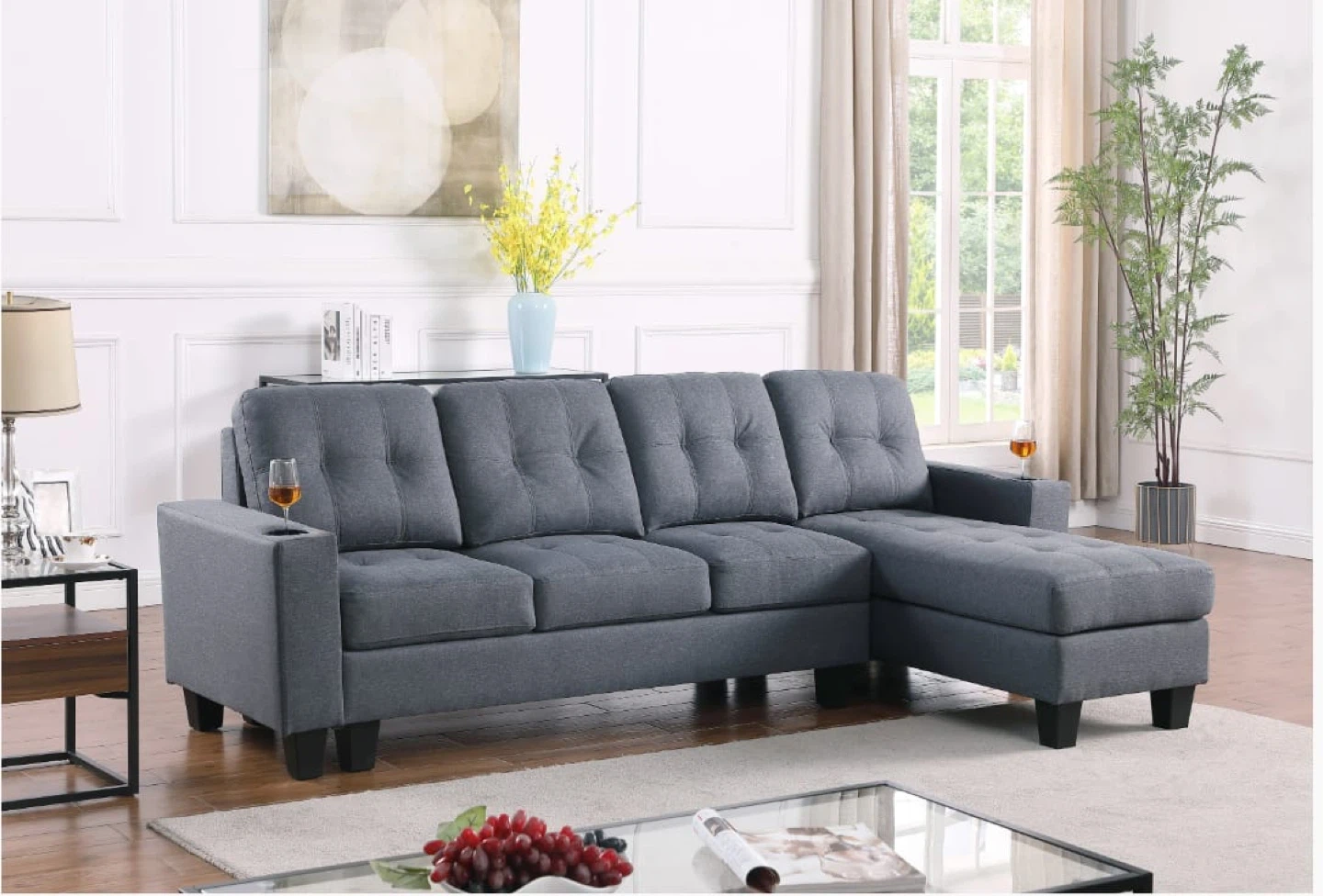 Blue-Grey Sectional Sofa with Chaise Lounge