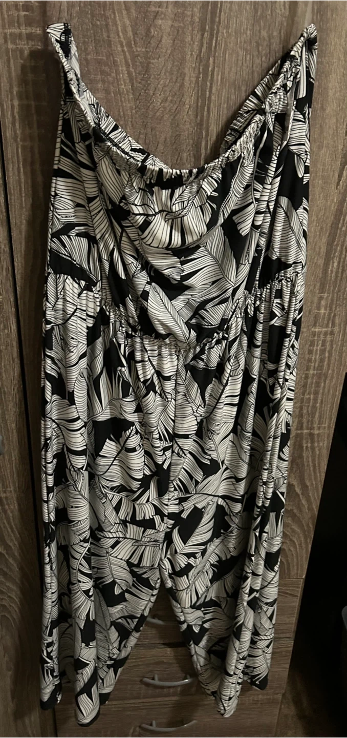Selling a cute jumpsuit in excellent condition! It features a stylish black and white leaf print. The size is XXL (TTG). Perfect for a casual day out or a relaxed evening at home. it fits XL to 2XL.