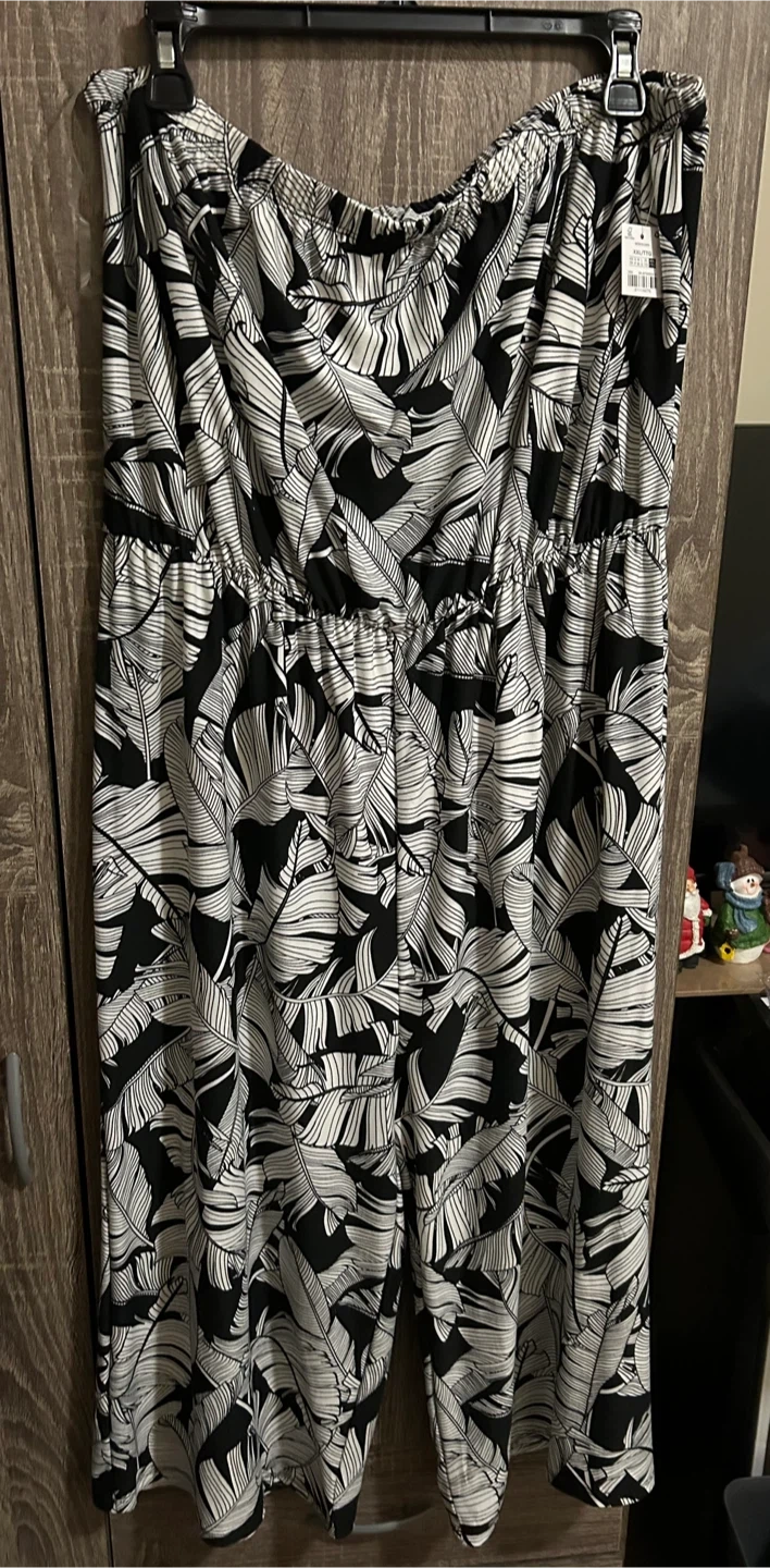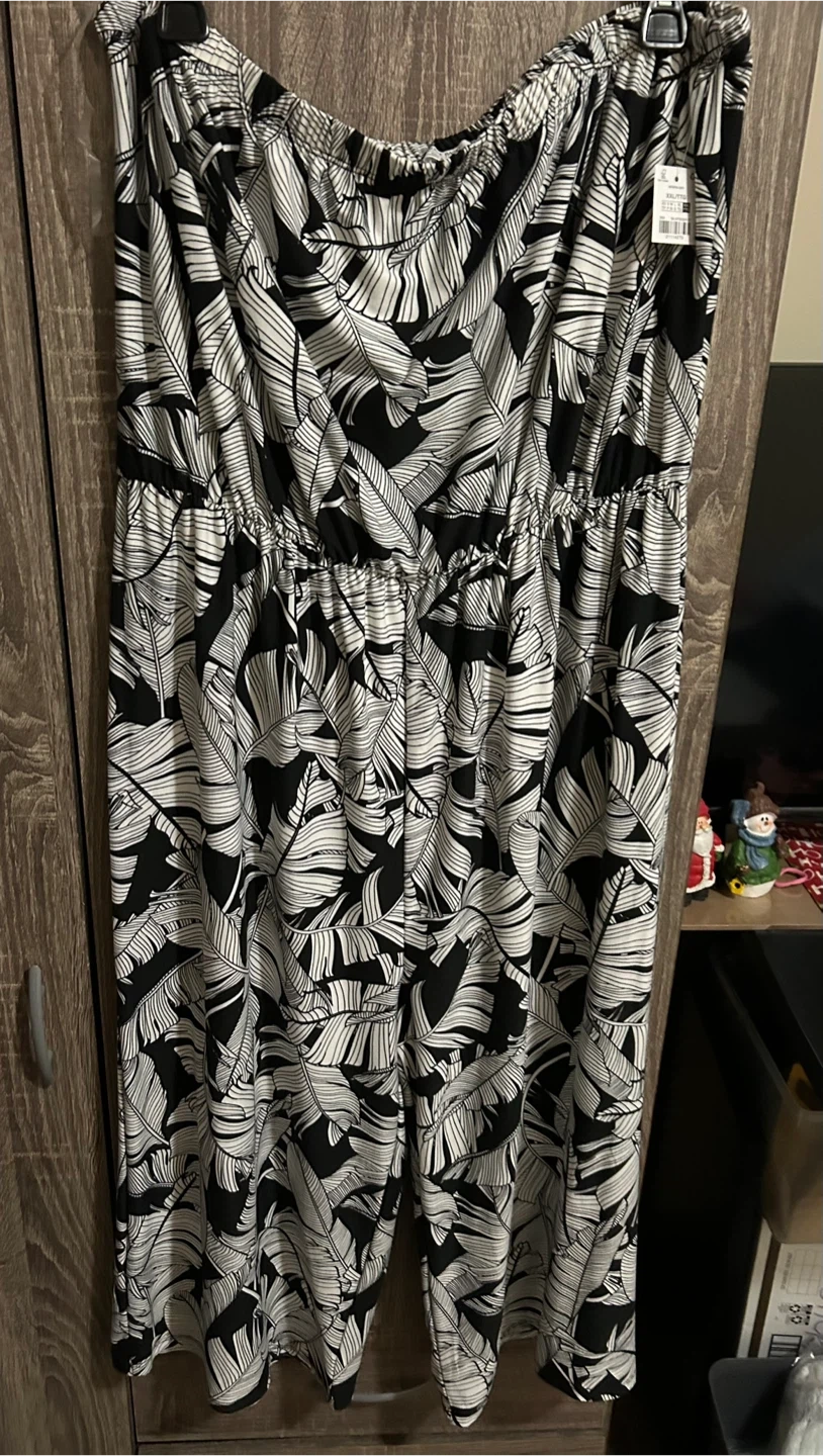 Selling a cute jumpsuit in excellent condition! It features a stylish black and white leaf print. The size is XXL (TTG). Perfect for a casual day out or a relaxed evening at home. it fits XL to 2XL.