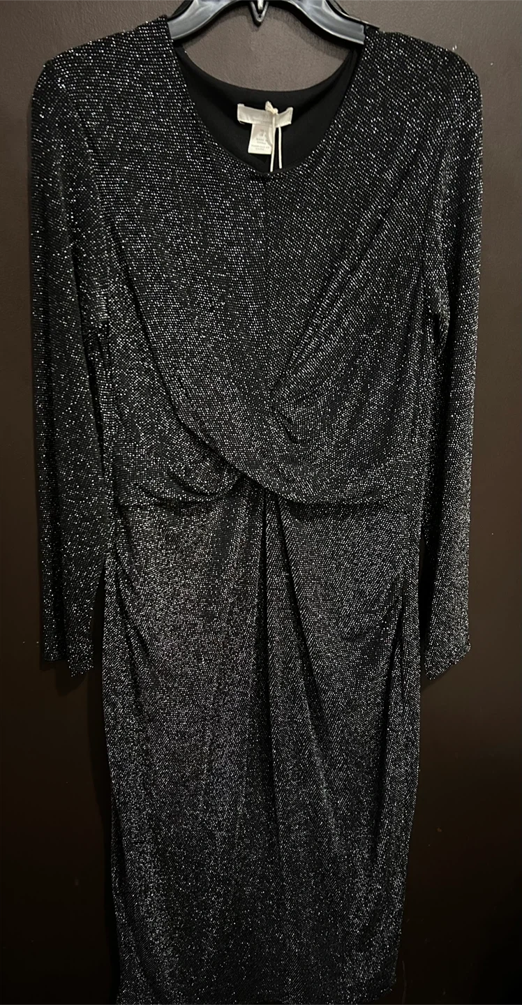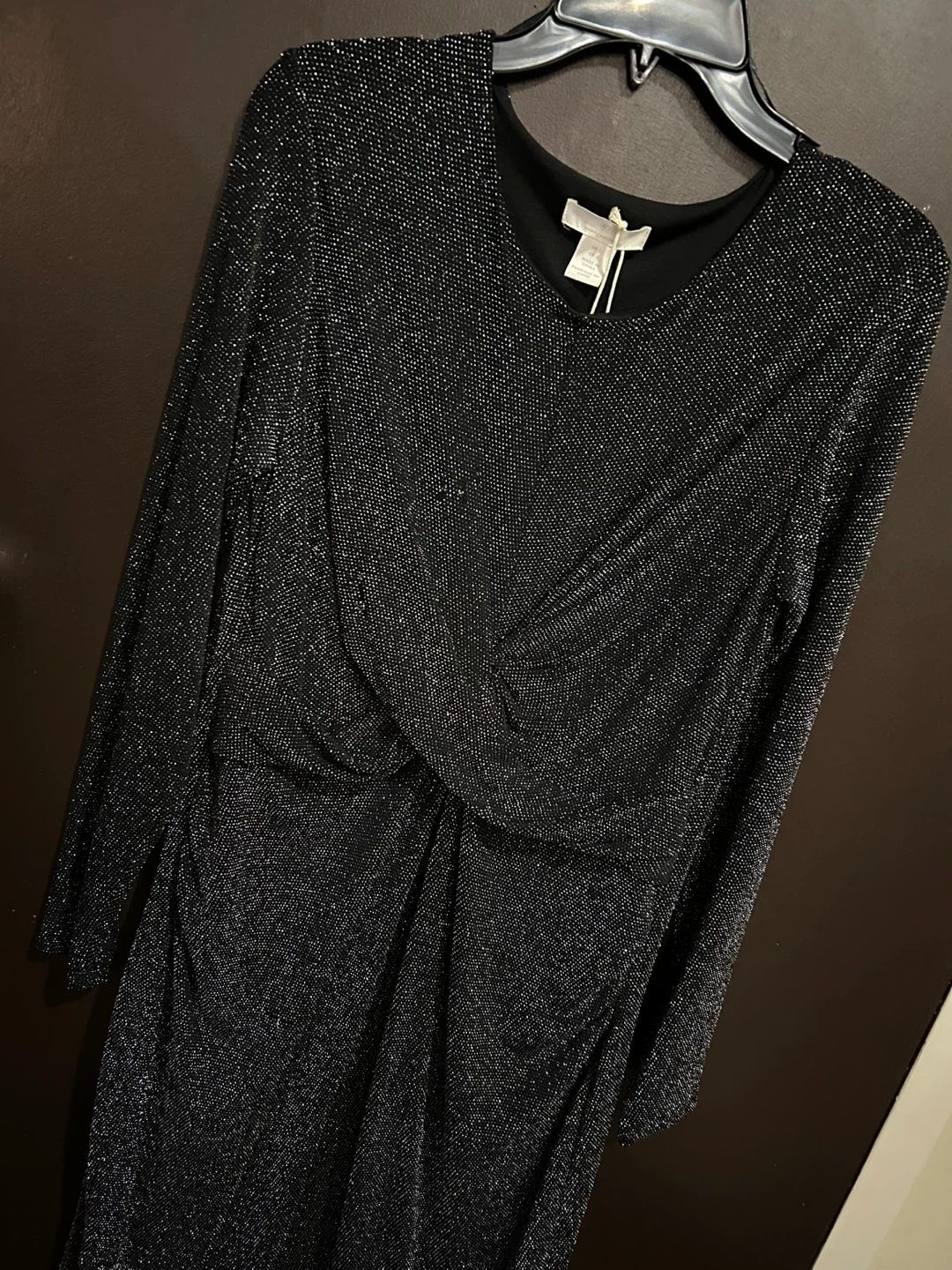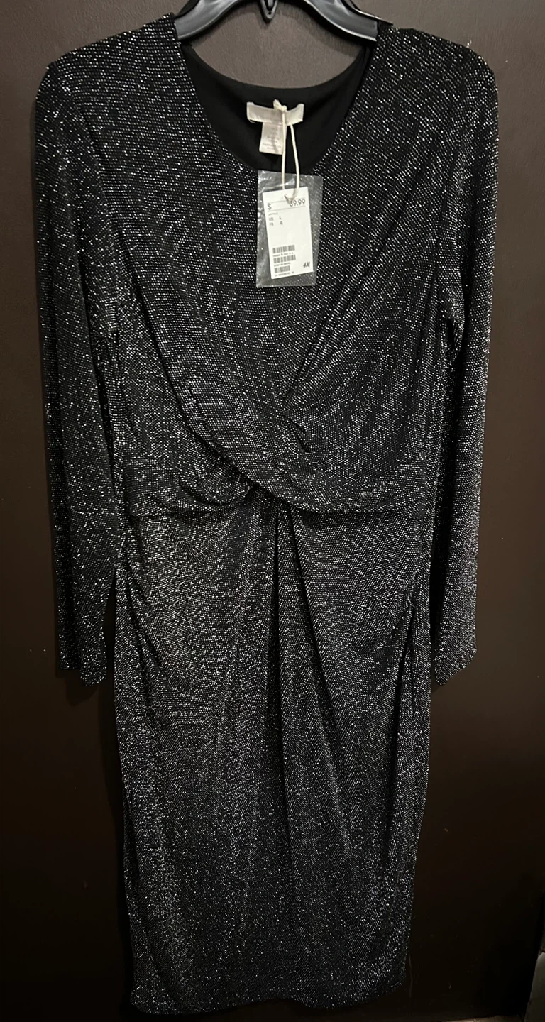 Selling a Brand new H&M black sparkly dress in size Large. It has a stylish twist detail at the front and long sleeves. Originally bought for $39.99!