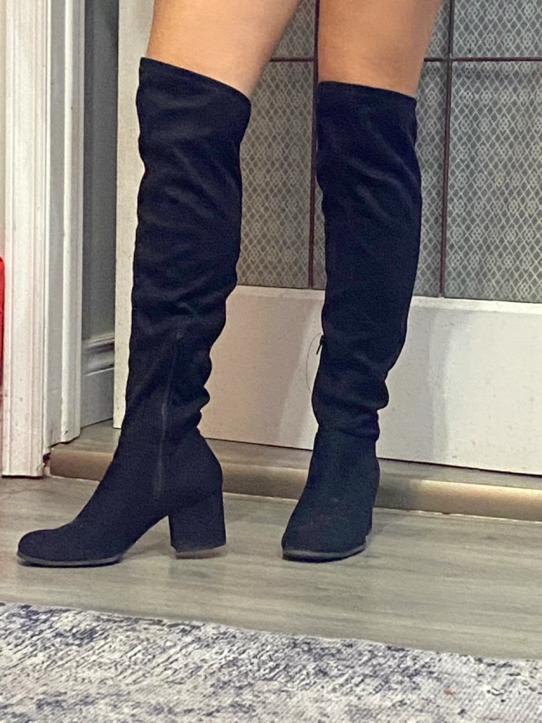 Selling a pair of black thigh-high boots in size 9.5. They're in great condition and ready for a new owner! These boots are perfect for adding a stylish touch to any outfit. Feel free to reach out if you're interested!