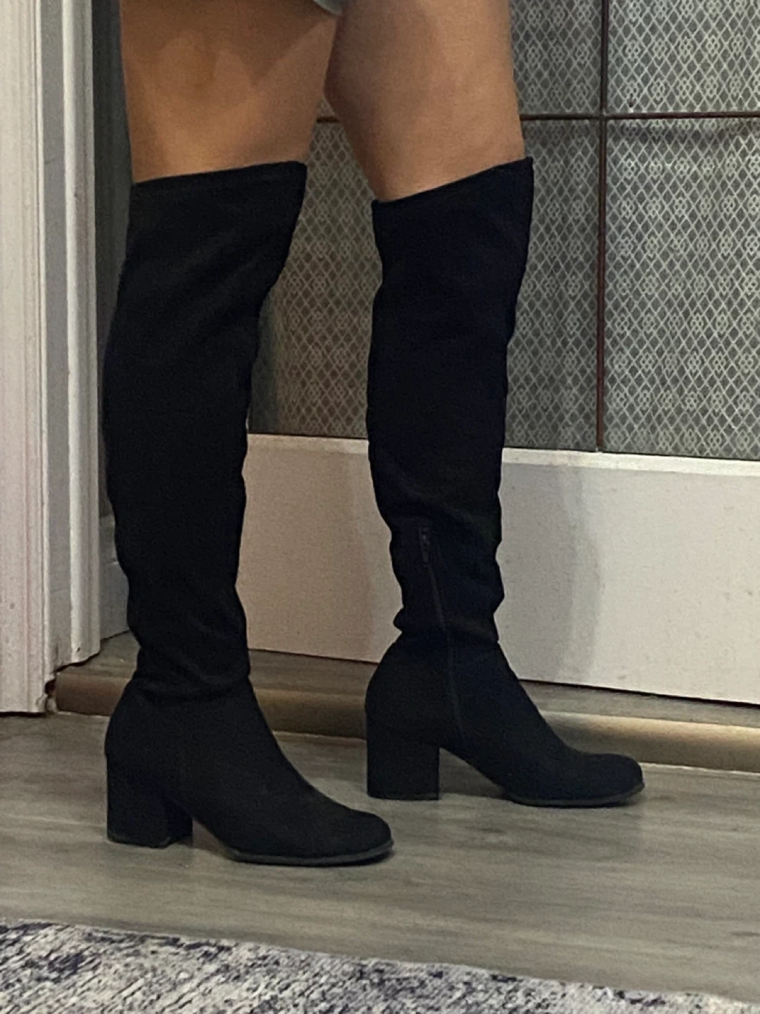 Selling a pair of black thigh-high boots in size 9.5. They're in great condition and ready for a new owner! These boots are perfect for adding a stylish touch to any outfit. Feel free to reach out if you're interested!