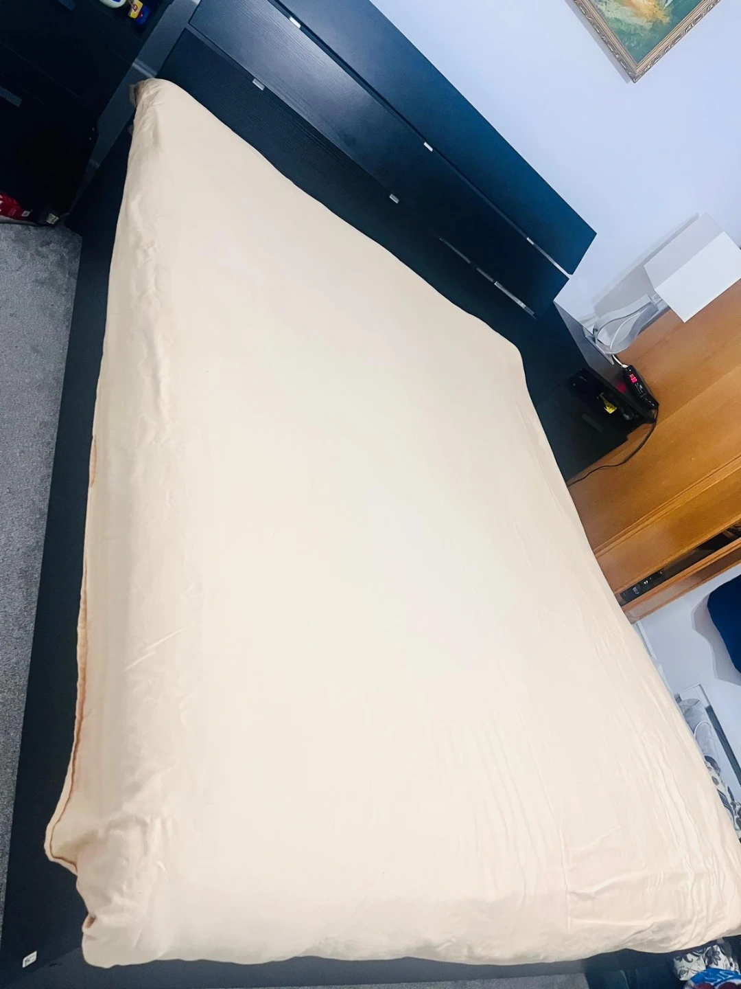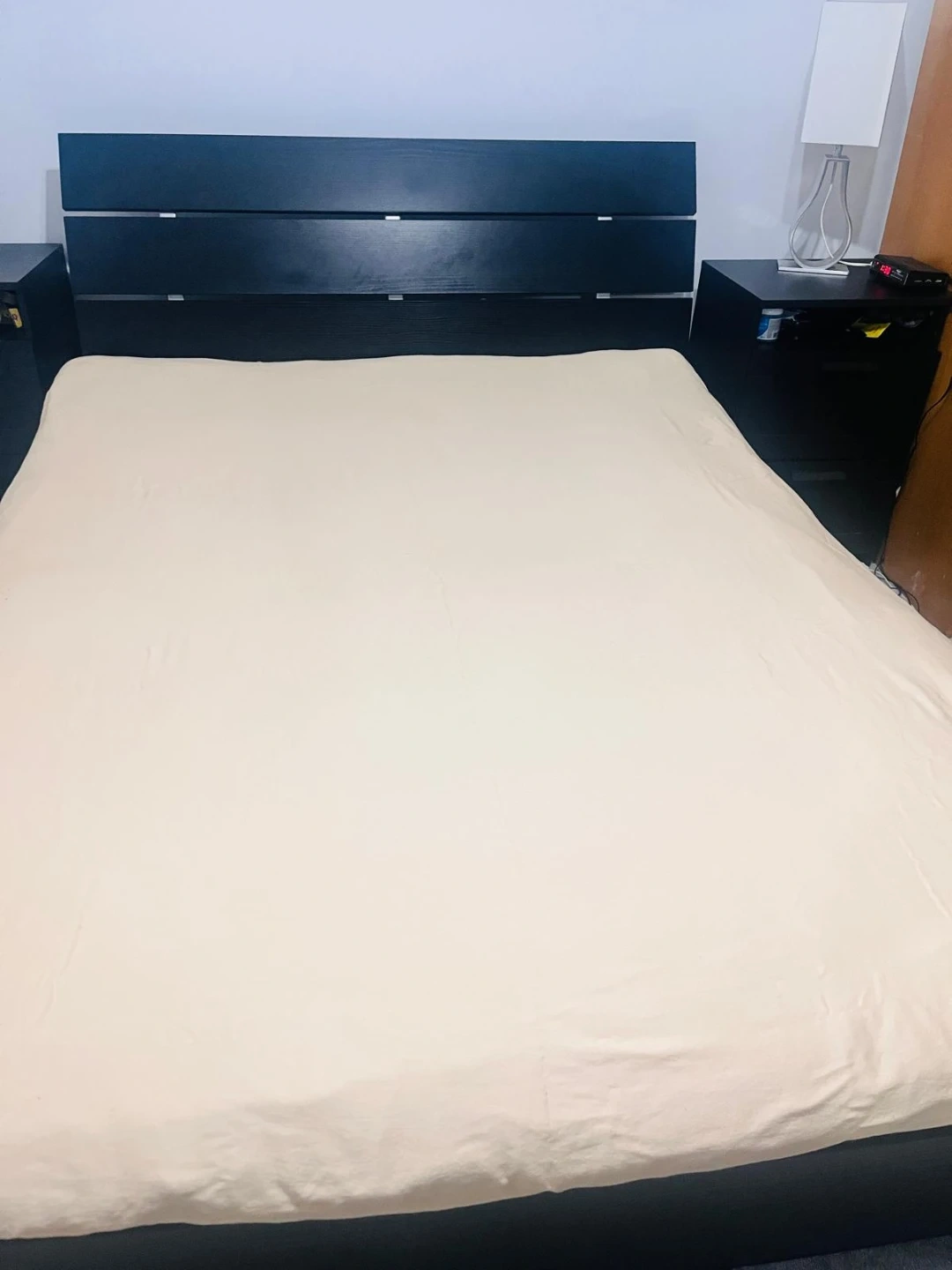 Selling a queen size bed frame in dark brown! It's in great condition and ready for a new home. The frame is sturdy and stylish, perfect for any bedroom setup. Feel free to message with any questions!