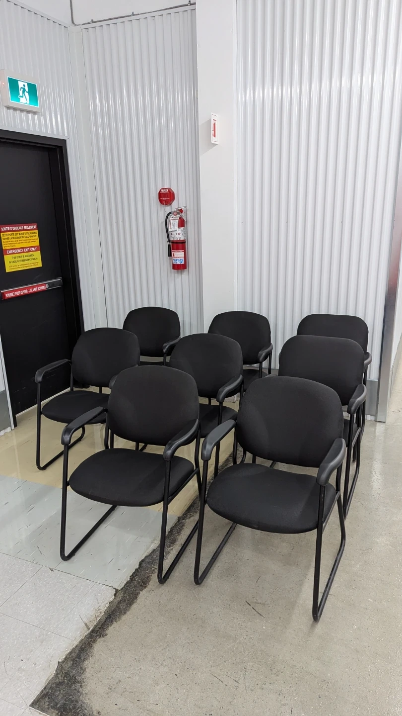Selling those 8 black office/waiting room chairs! They're in great condition and would be perfect for an office or waiting area
