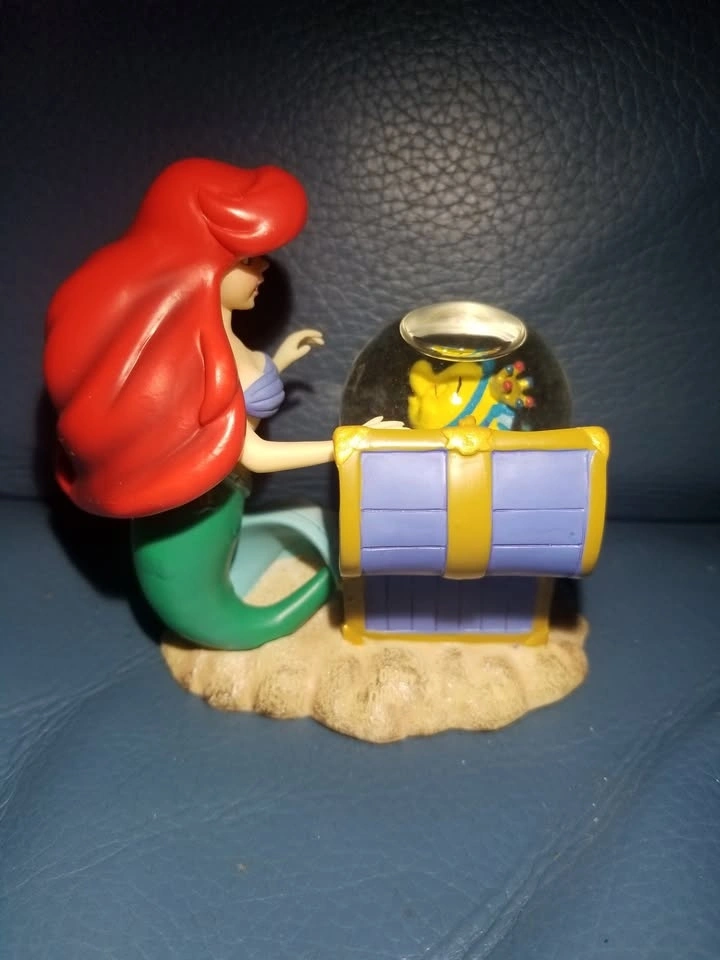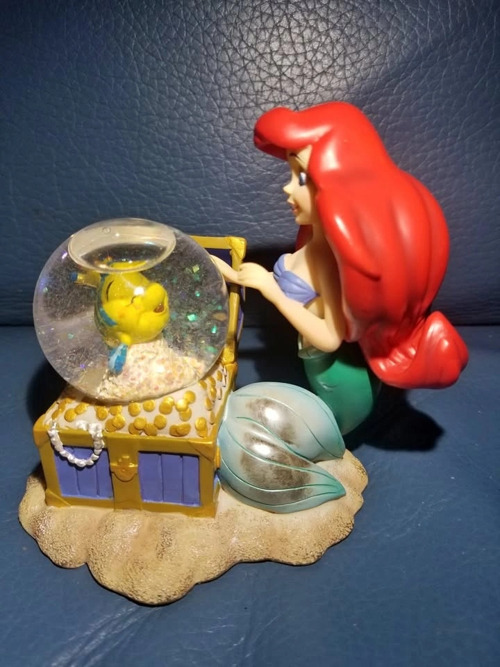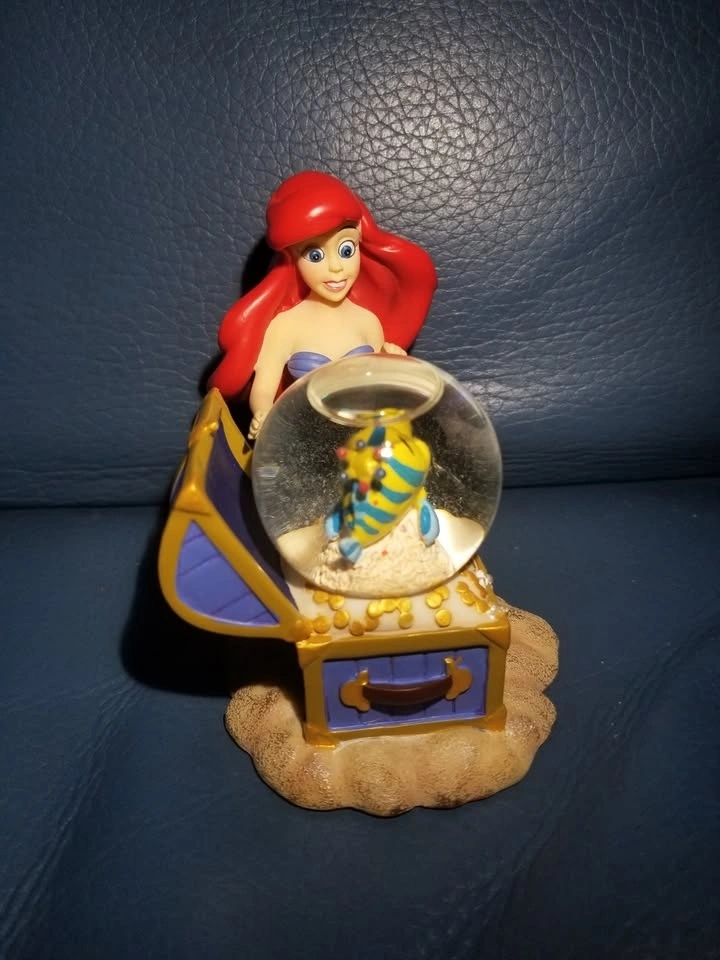 Calling all Disney lovers and collectors! Iβm selling this beautiful, vintage Disney Little Mermaid snow globe featuring Ariel and Flounder. The βsnowβ inside is actually glitter, giving it a magical shimmering effect. This gorgeous and rare vintage Little Mermaid snow globe is a true collectible treasure from the original Disney Store locations in Toronto, which officially closed in 2021.