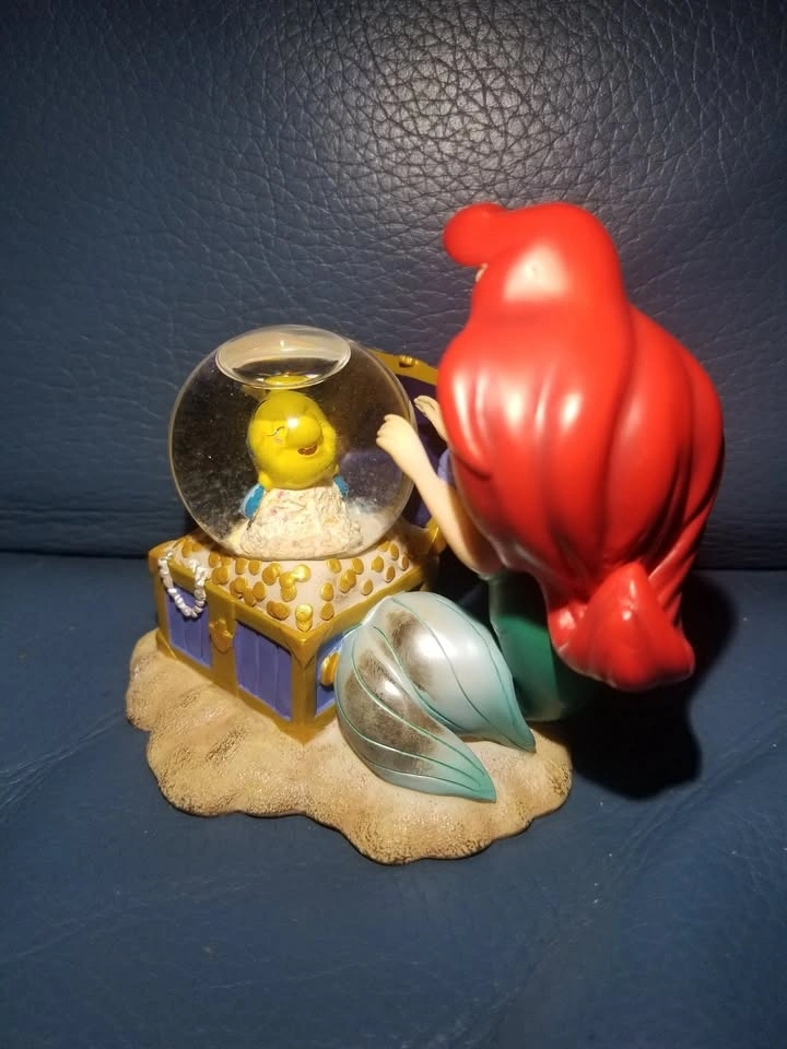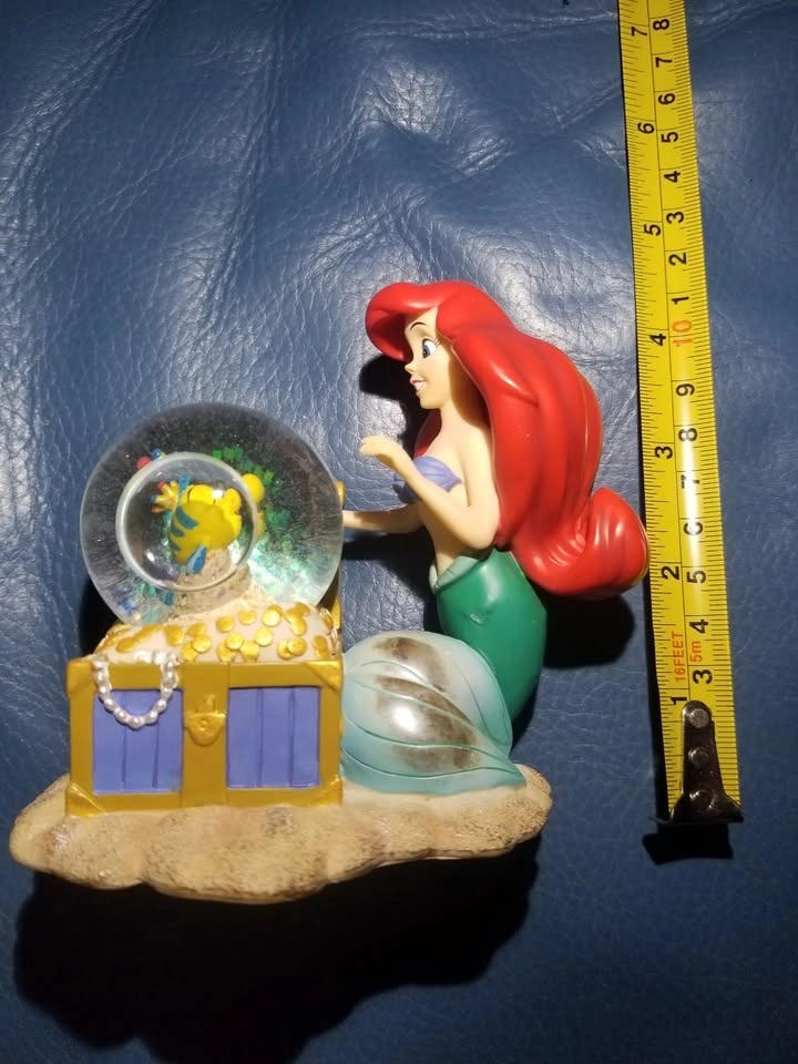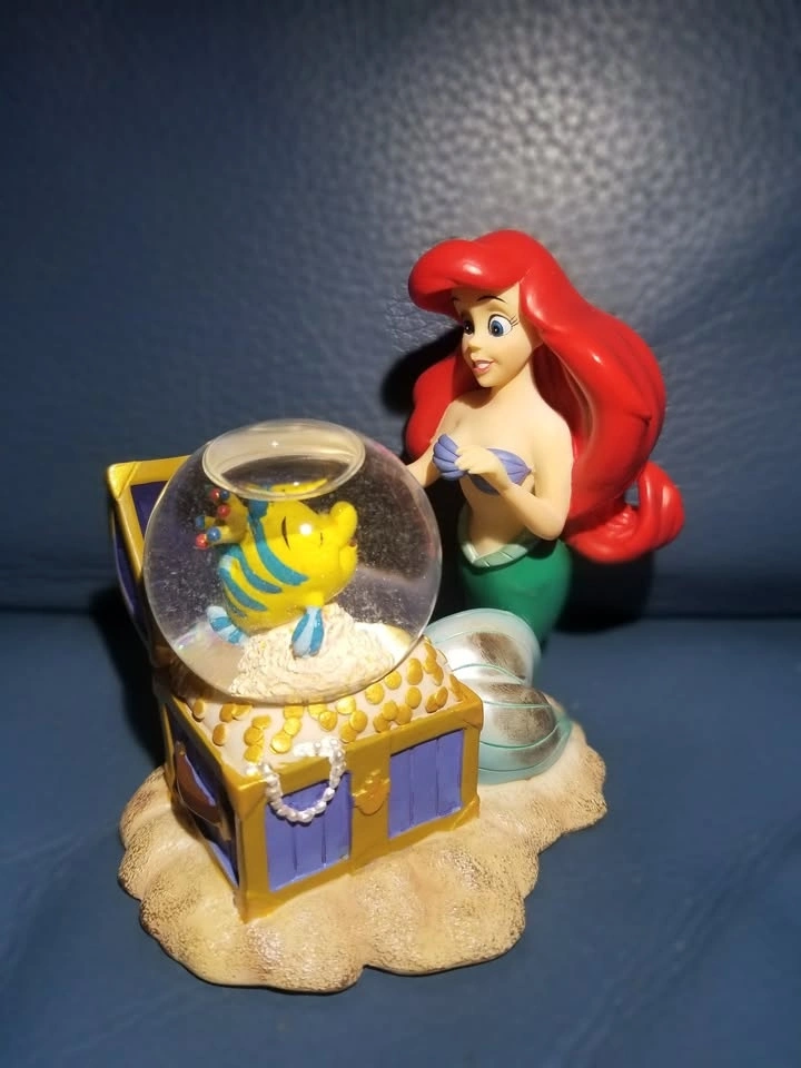 Calling all Disney lovers and collectors! Iβm selling this beautiful, vintage Disney Little Mermaid snow globe featuring Ariel and Flounder. The βsnowβ inside is actually glitter, giving it a magical shimmering effect. This gorgeous and rare vintage Little Mermaid snow globe is a true collectible treasure from the original Disney Store locations in Toronto, which officially closed in 2021.