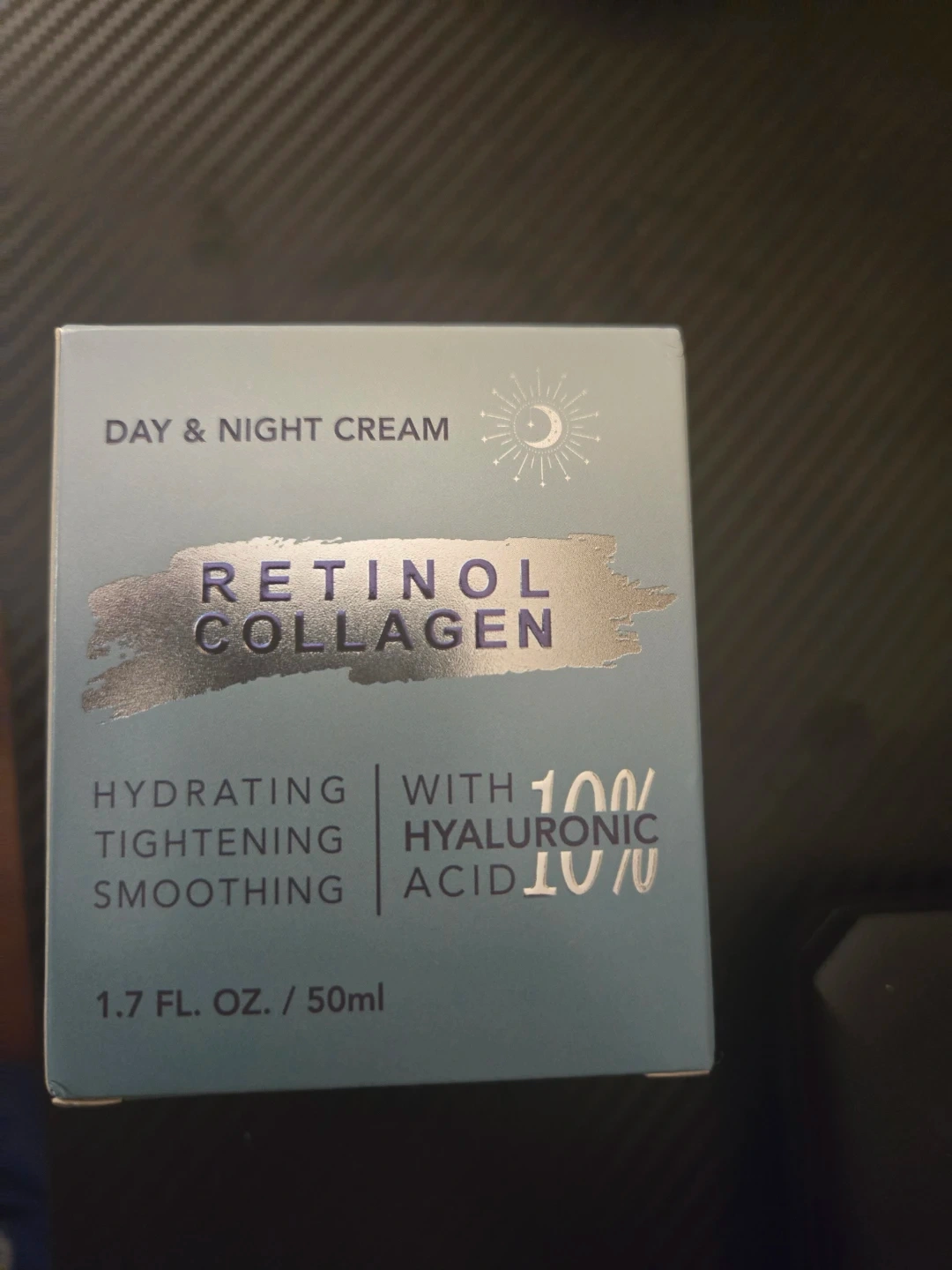 Selling a Day & Night Cream with Retinol and Collagen. It's hydrating, tightening, and smoothing. Contains 1.7 fl oz / 50ml of product and includes hyaluronic acid.
