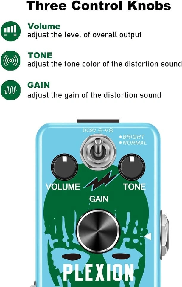 Controls: Gain, Tone, Volume + Bright/Normal toggle