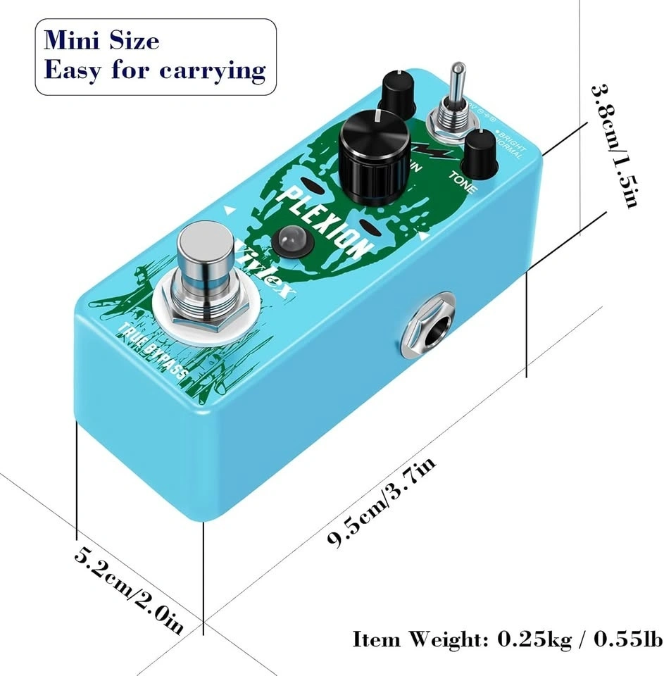 Condition: Open box, never used. Compact Plexi-style distortion pedal with true bypass and powerful tone shaping. Perfect for classic rock, 80s/90s lead tones, and crunchy rhythm sounds.