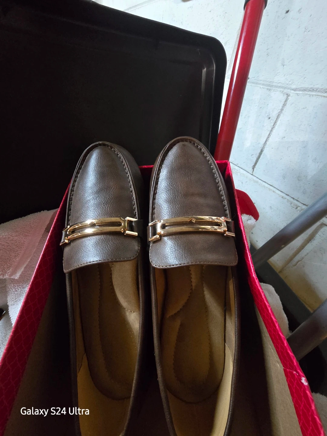 Selling a pair of brown loafers in size 6.5. They come in their original box and are in good condition. Perfect for a casual or dressy look!