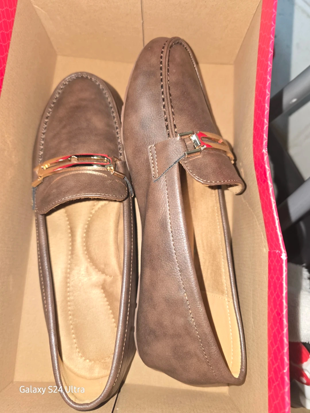 Selling a pair of brown loafers in size 6.5. They come in their original box and are in good condition. Perfect for a casual or dressy look!