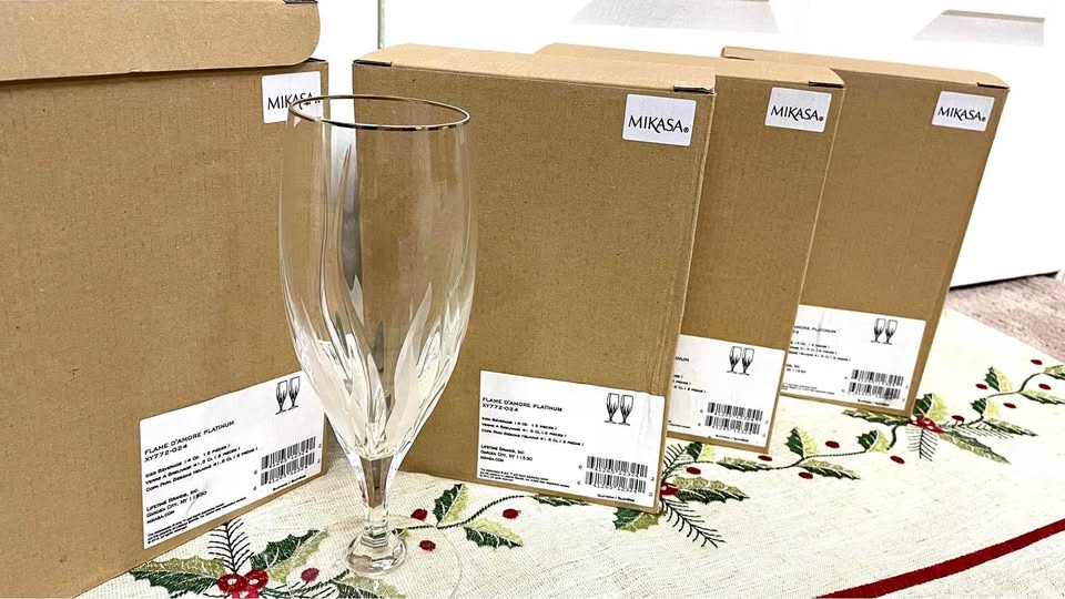 I’m selling four boxes of two Crystal glasses per box.