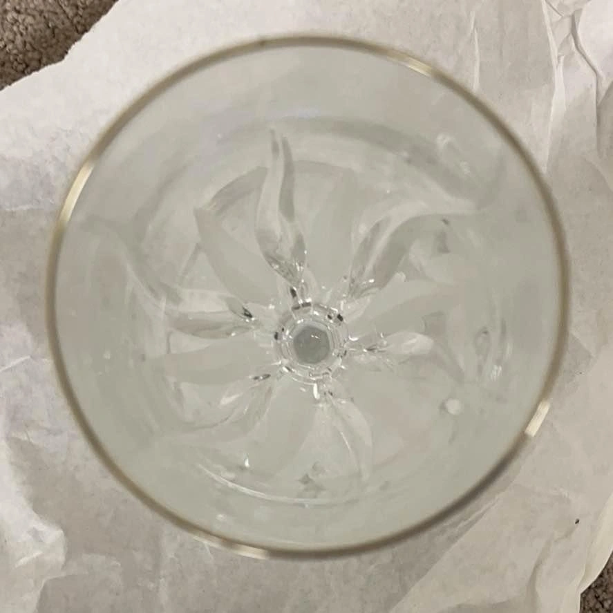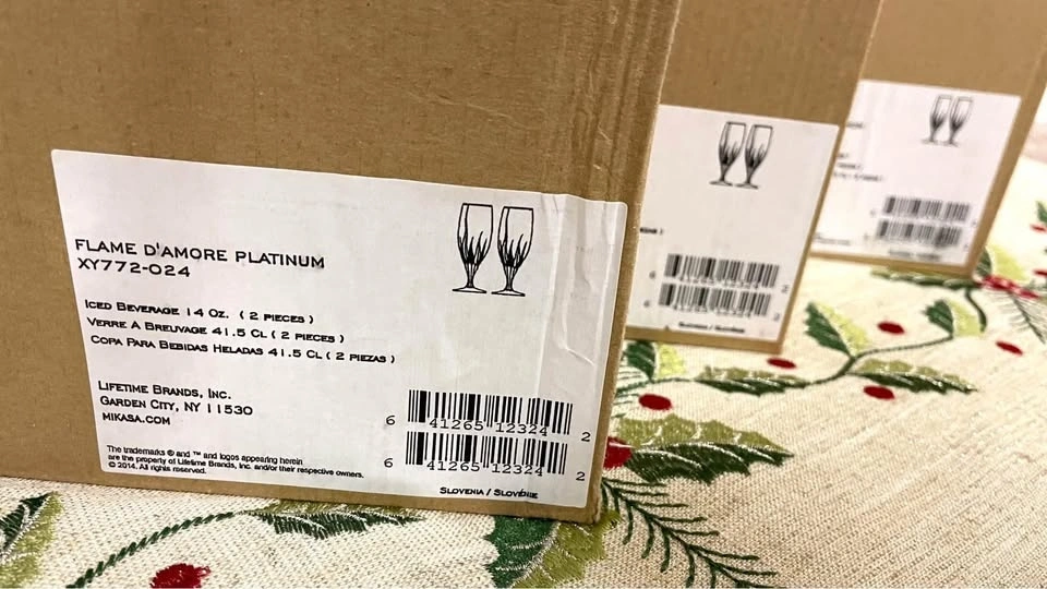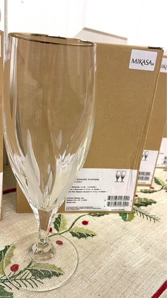 These beautiful crystal glasses were only used once for a beautiful Christmas. They have no chips, stains or cracks.