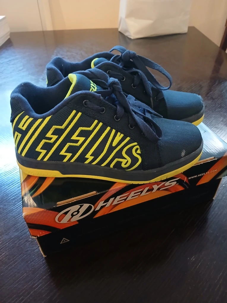 Selling a pair of Heelys roller shoes in navy and yellow size 5! They're in good condition and come with the original box. These are perfect for some fun rolling around