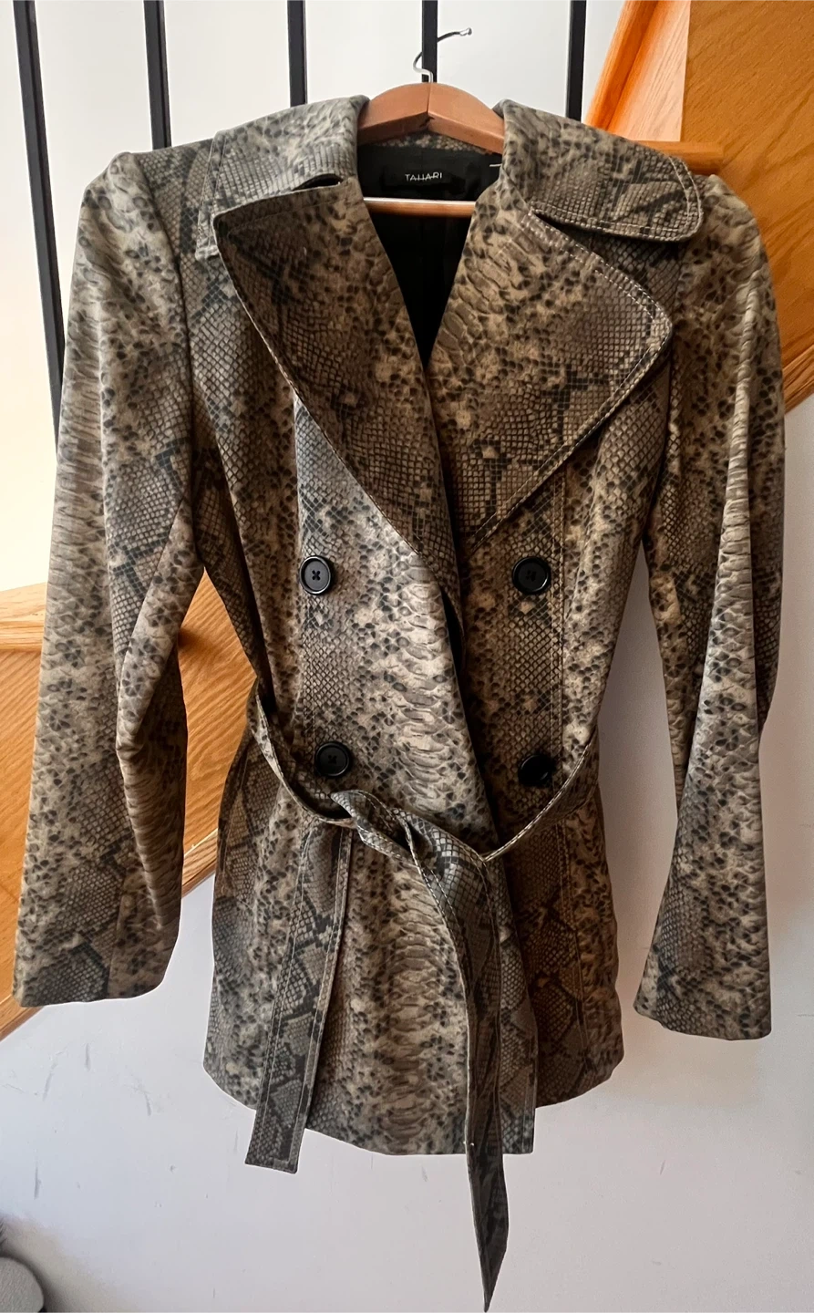 Buy & SellTahari Snakeskin Print JacketTahari Snakeskin Print Jacket$36Snakeskin print trench coat from Tahari! It's in great condition and has a tie around the waist. Perfect for fall!ConditionLike newBrandTahariWHERE TO MEETCheck LocationView MapSELLERverifiedRebeccaLakeview650 reviews1 chats·0 favorites·20 viewsSEND CHAT TO SELLERHi Rebecca! I’m interested in your listing.Hi Rebecca! I’m interested in your listing.Get the Karrot app to chatSign In to chat