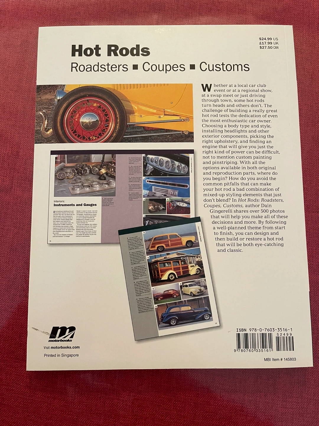 Selling a copy of "Hot Rods: Roadsters, Coupes, Customs" Idea Book by Dain Gingerelli. This book is packed with inspiration and ideas for your hot rod project, featuring hundreds of custom fabrication and paint ideas. It also covers chop and channel styles, interiors, engines, lighting, and more. Soft cover. Cash only