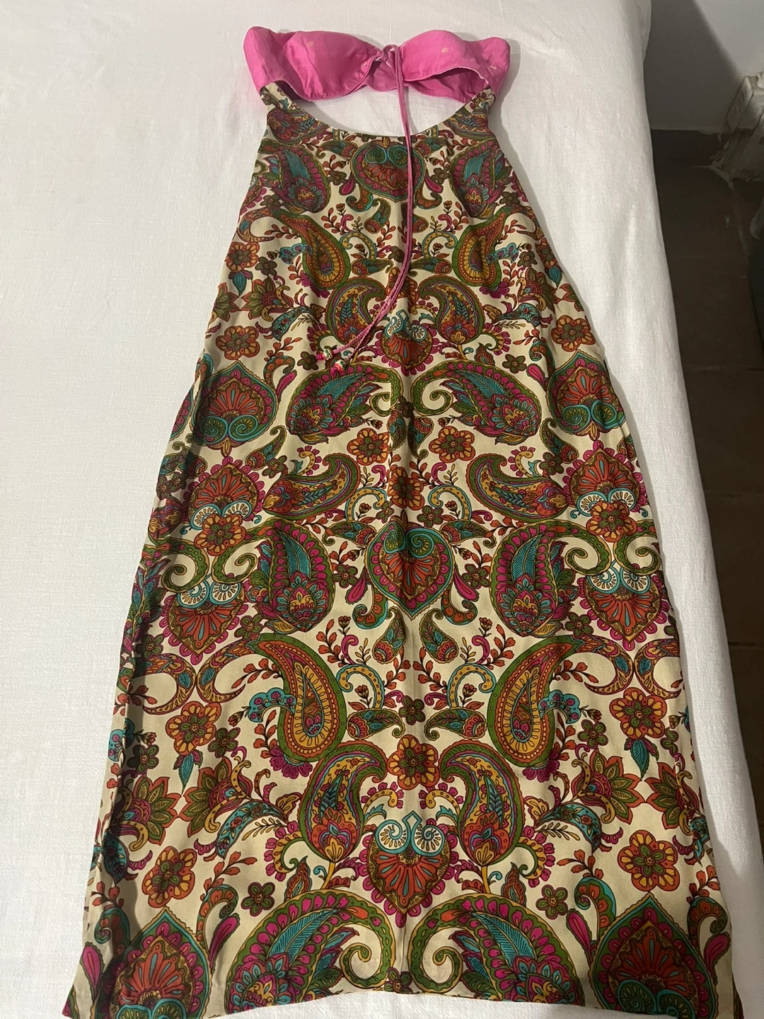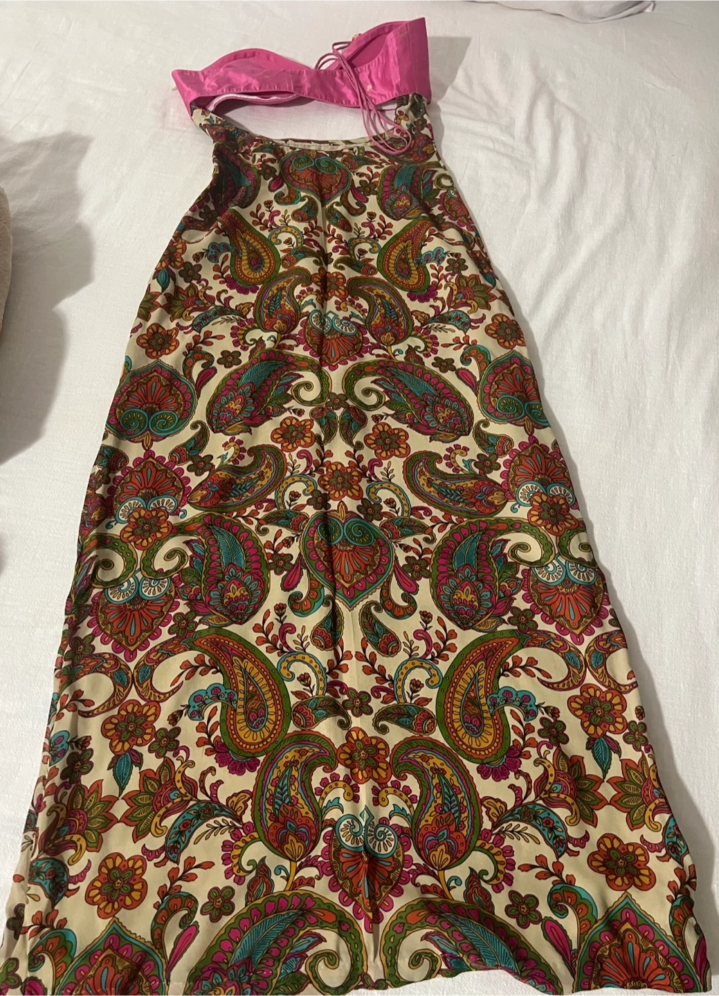 Selling a beautiful paisley pattern maxi dress. The dress features a vibrant and colorful design, perfect for a casual or dressy occasion. It's in great condition and ready for a new wardrobe!
