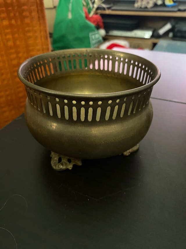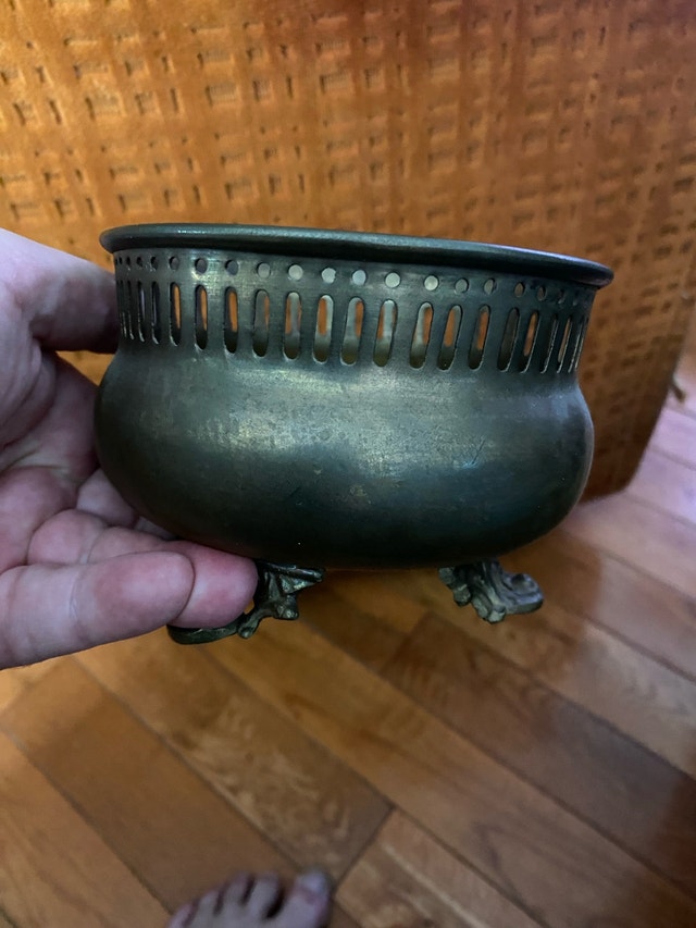 Vintage solid brass footed planter