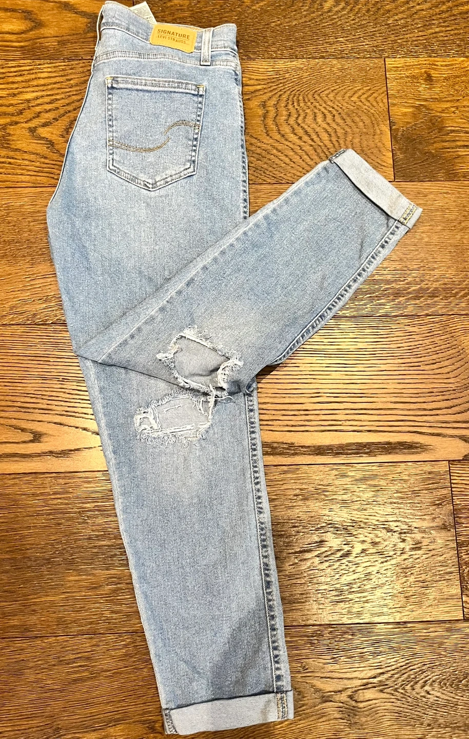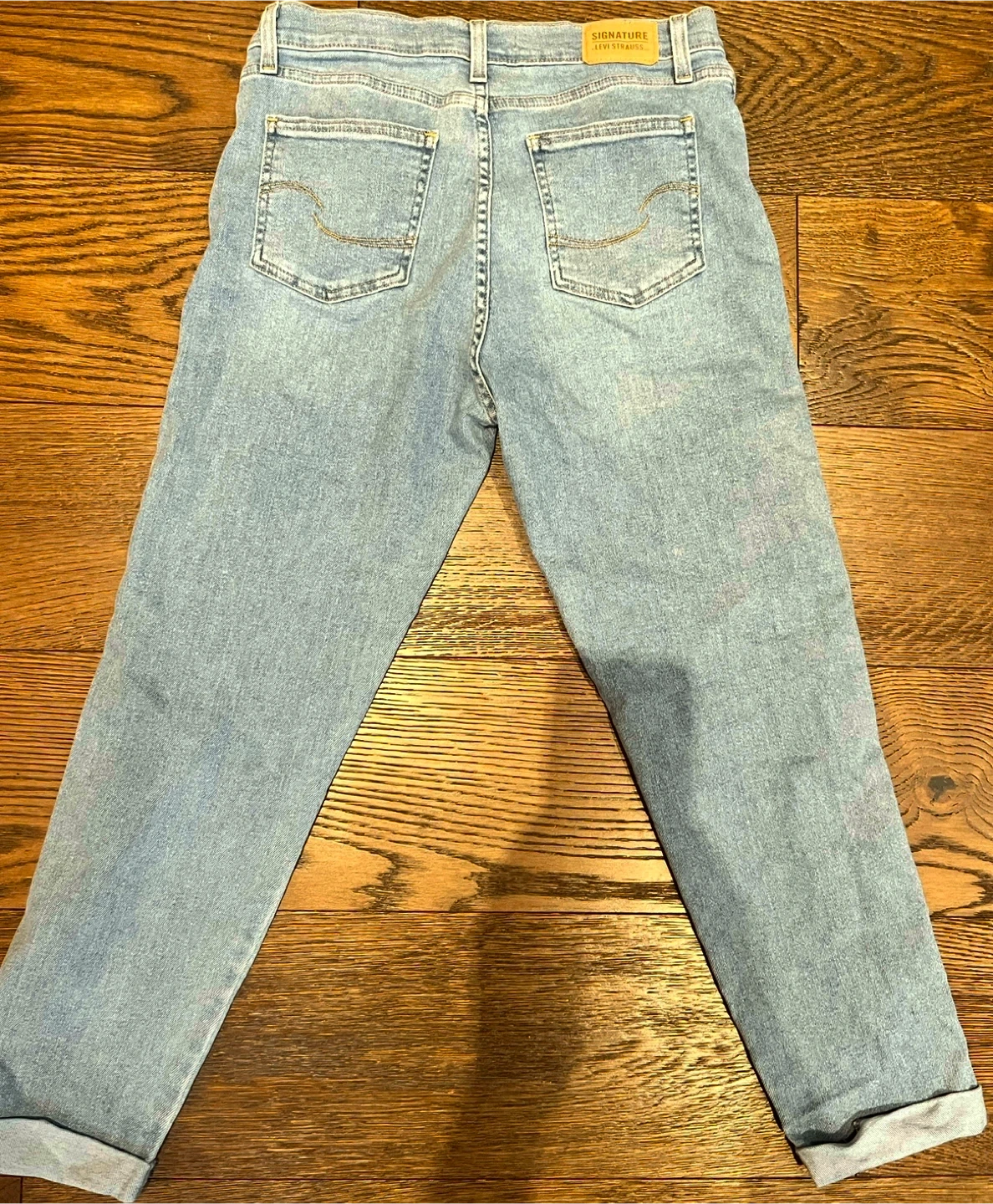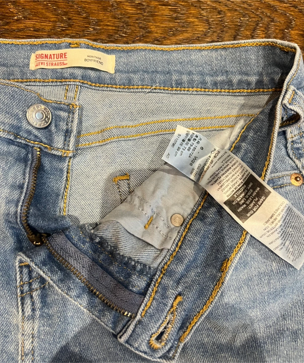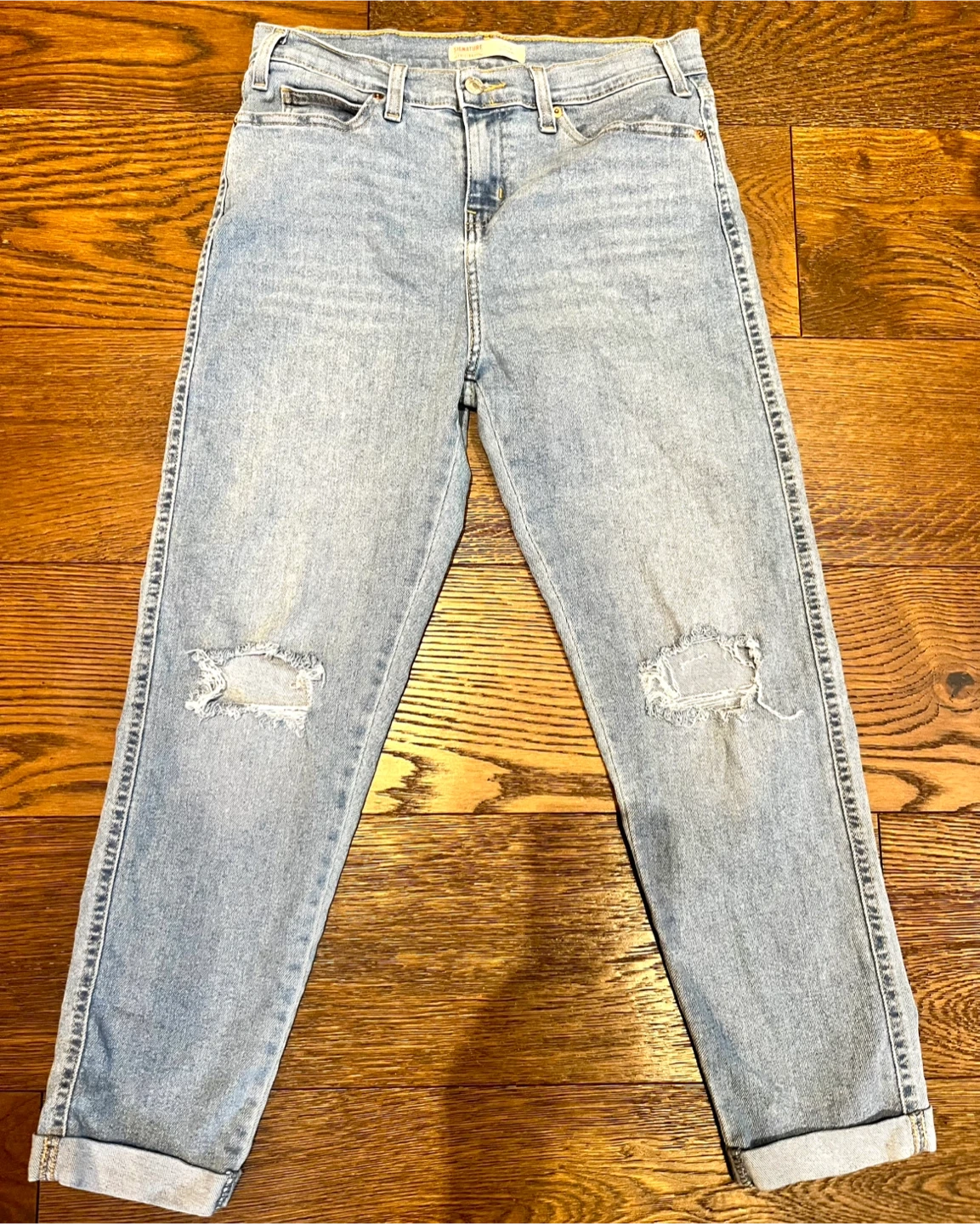 VGUC Levi’s Boyfriend jeans. Size 6/28. waist. Distressed knees, cuffed hem. These are a mid rise, slightly tapered jean. In VGUC. Soft denim in a light wash.