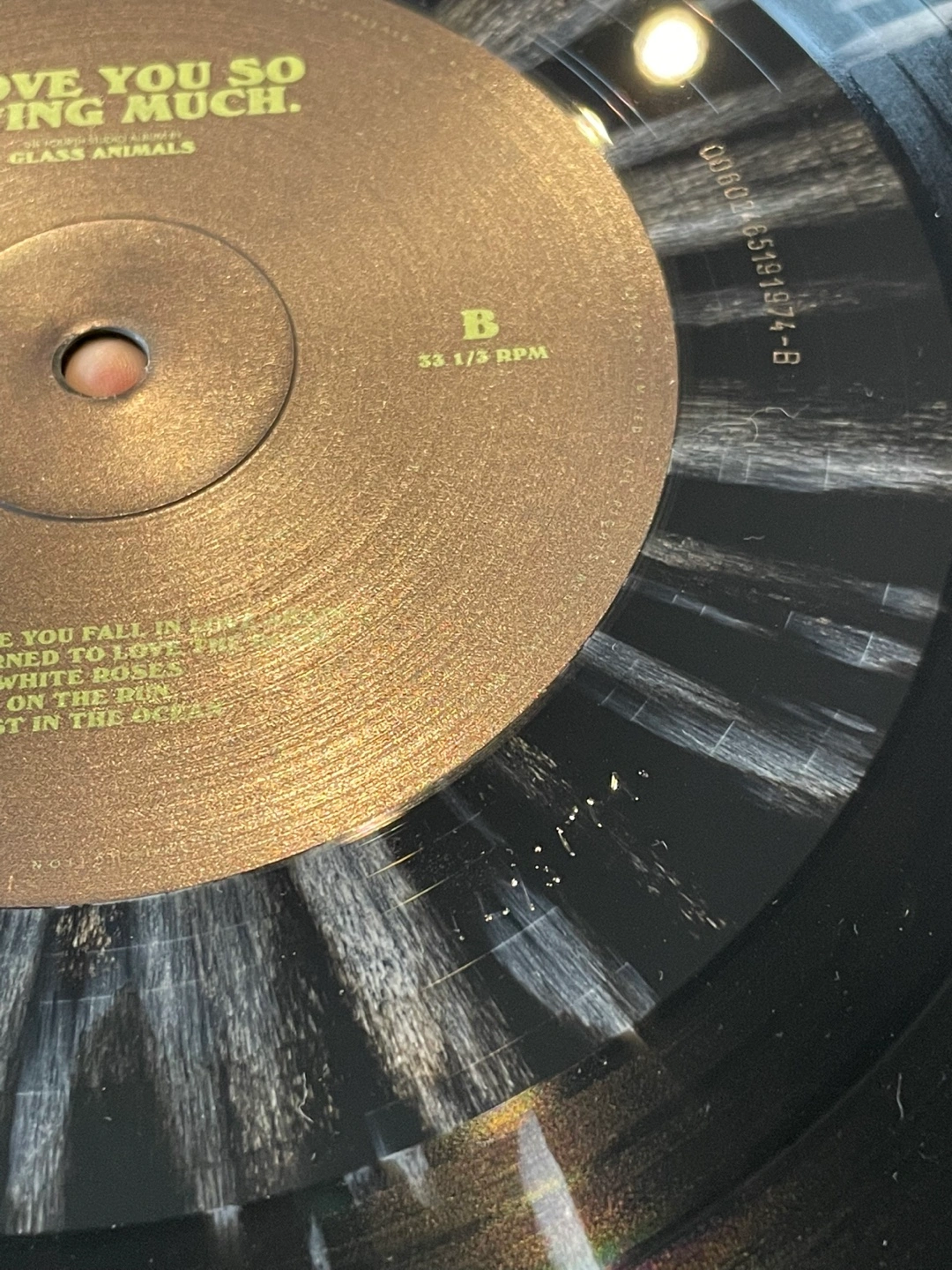 Limited edition splatter edition vinyl of the Glass Animals “I Love You So F***ing Much” album. It comes with ILYSFM etched on the inner rim of each side by the band themselves (this does not affect the quality of the play).