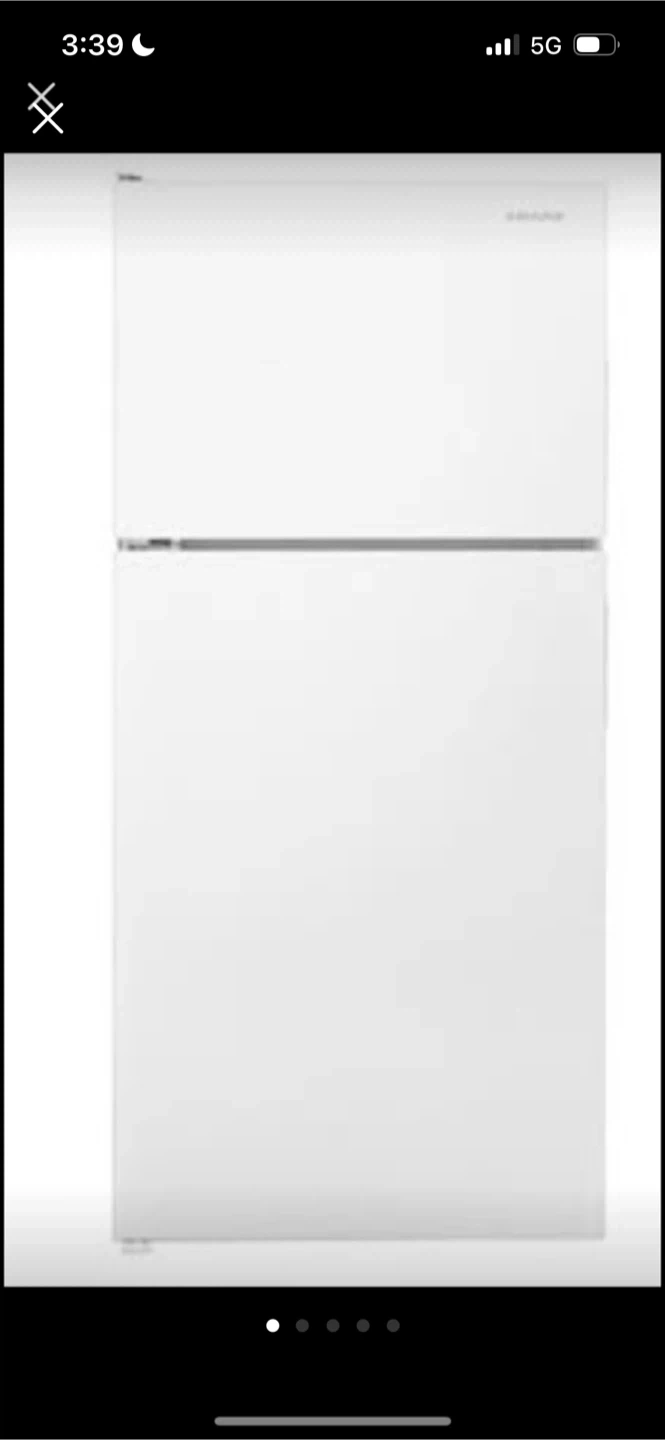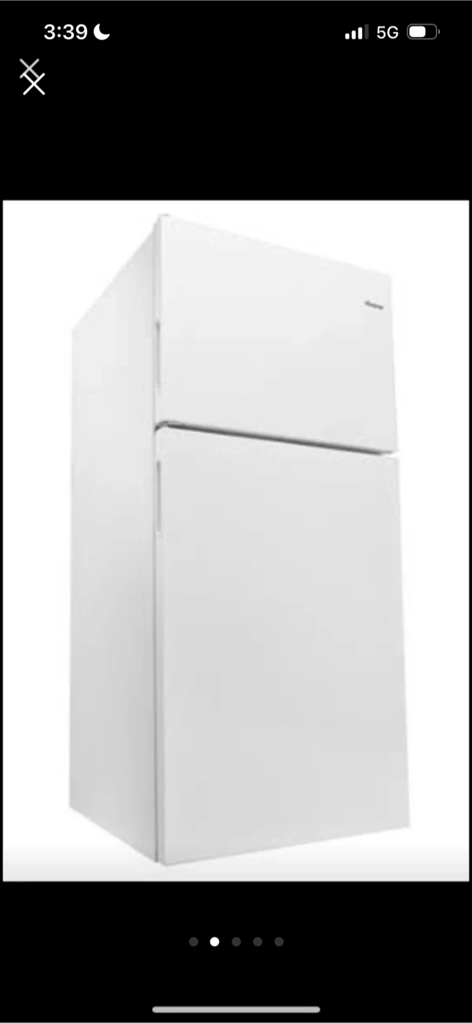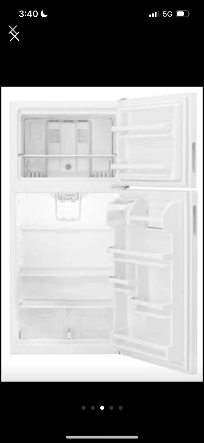 Selling a top freezer refrigerator in white. It has adjustable temperature settings to keep your food fresh. Inside, you'll find plenty of shelving and storage options for all your groceries. Perfect for a small family or apartment!