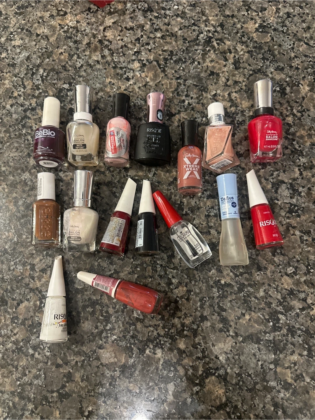 Selling a lot of assorted nail polishes from brands like Sally Hansen, Risque, BeBio, Dailus, Colorama and Essie! Great for trying out different colours and brands