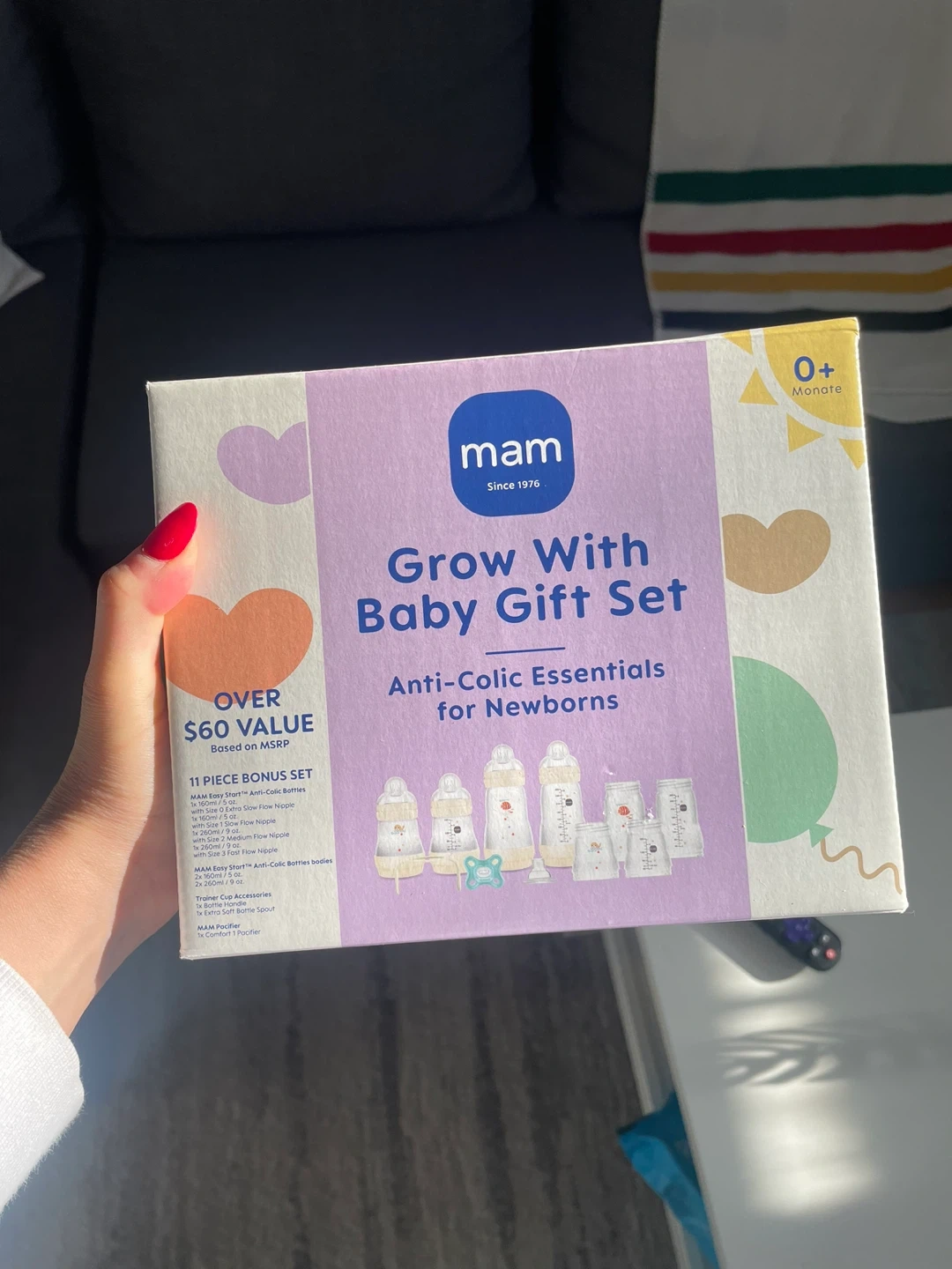 Selling a brand new MAM Grow With Baby Gift Set! This set includes 11 pieces of anti-colic essentials for newborns. It's perfect for a baby shower gift or for stocking up on baby essentials. The box mentions over $60 value!
