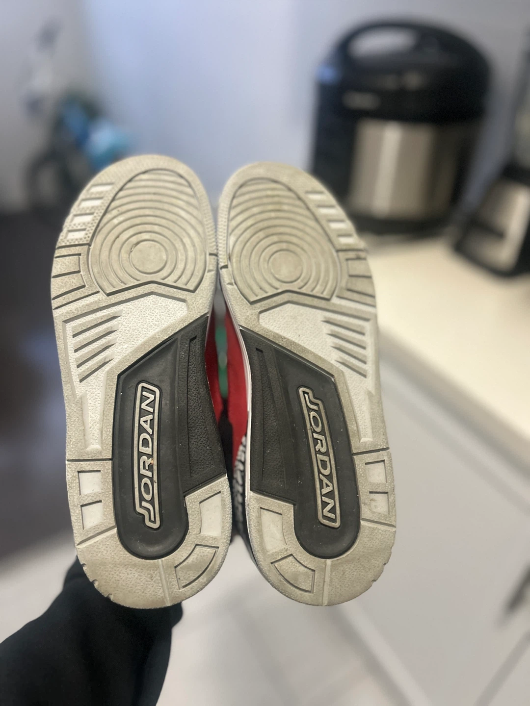 Selling a pair of Jordan 3 Retro in Fire Red. They show some signs of wear, as you can see in the pictures, but still have lots of life left! These are a stylish and comfortable pair of shoes.