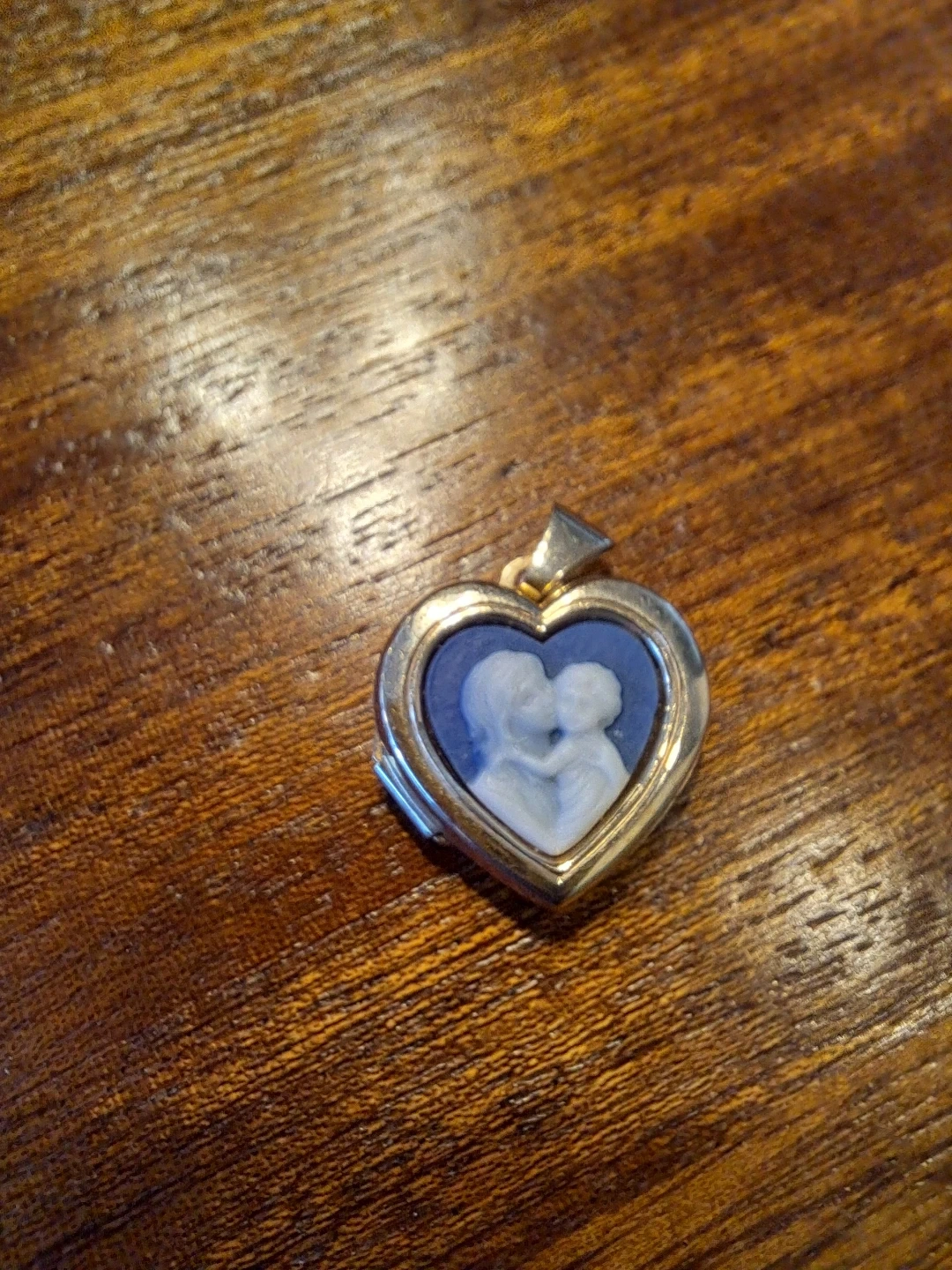 Here's a sweet heart-shaped locket pendant. It appears to be made of 10K gold based on the stamp on the bail. The locket opens up to reveal space for two small photos or keepsakes. It also has a cameo design on one side!