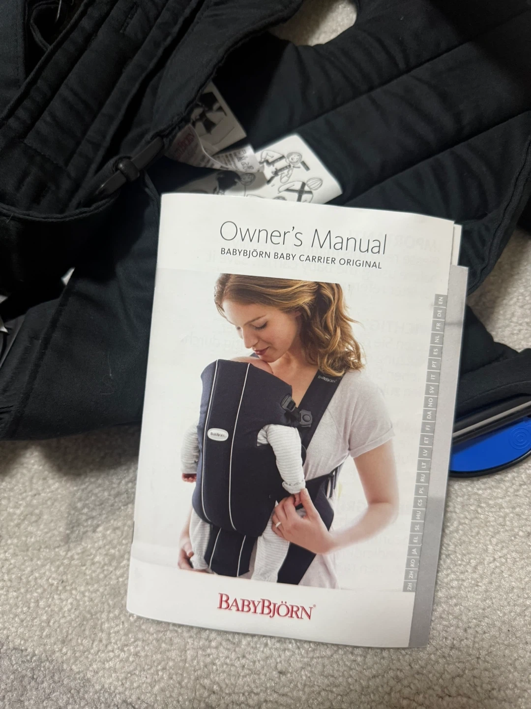 Selling a gently used BabyBjörn Baby Carrier Original in black. It's in great shape and super convenient for carrying your little one around. Comes with the owner's manual to help you get started!