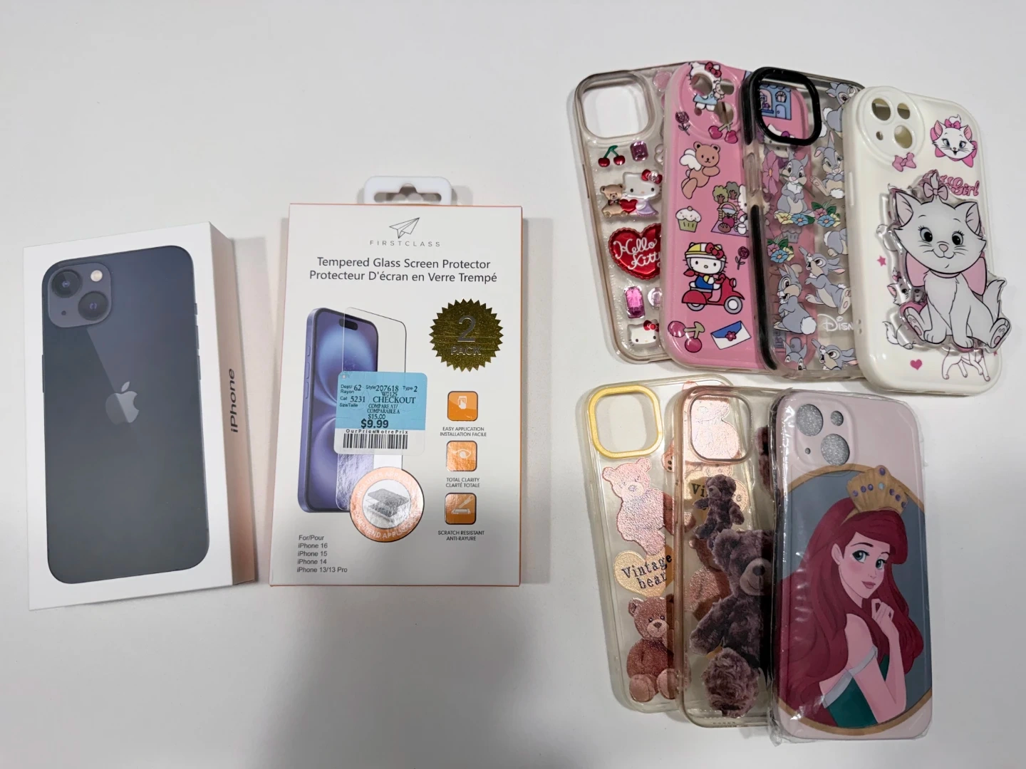 Selling an iPhone 13 Midnight 128Gb! It comes with the box and charging cable, plus the SIM eject tool. The battery health is at 83%. Also comes with a First Class Tempered Glass Screen Protector and some cute phone cases!