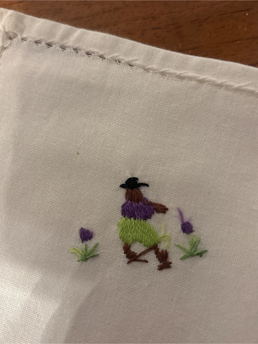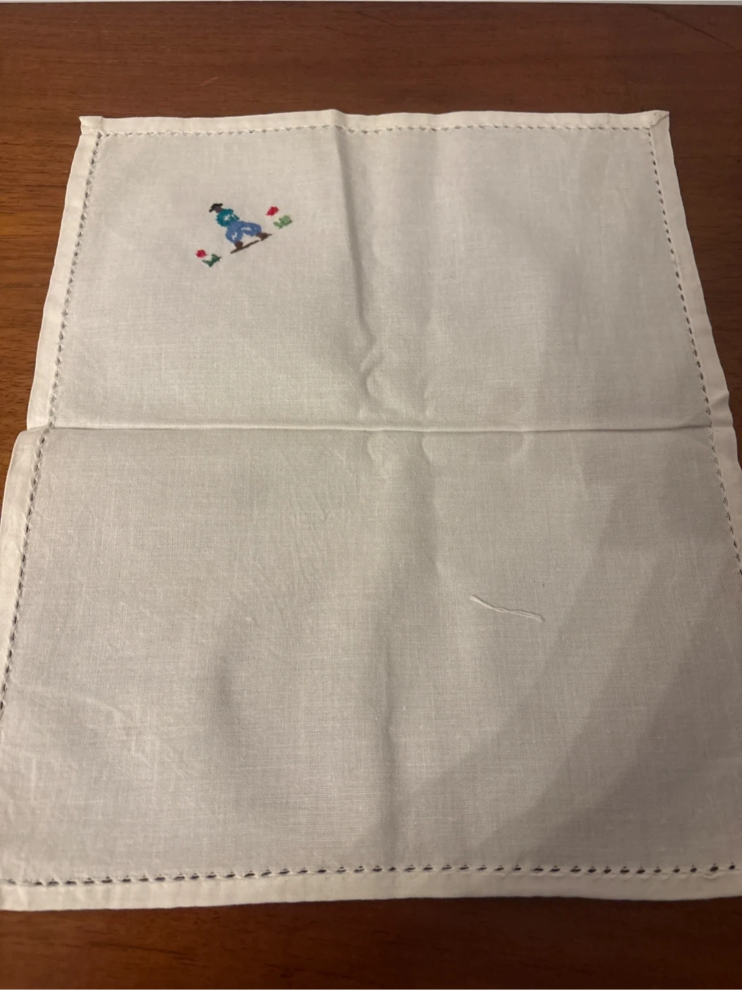I'm selling a set of seven white napkins. They each have a unique hand embroidered design. They are in good condition and would be a great addition to your table setting