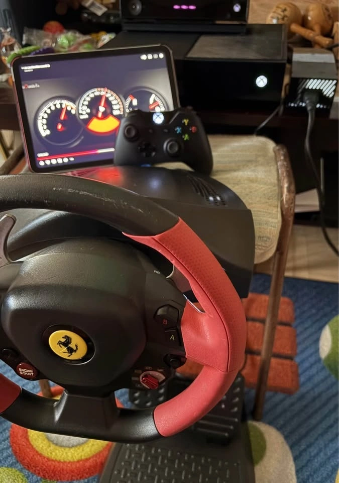 Xbox one-S w/kinect camera and ferari racingwheels and pedal