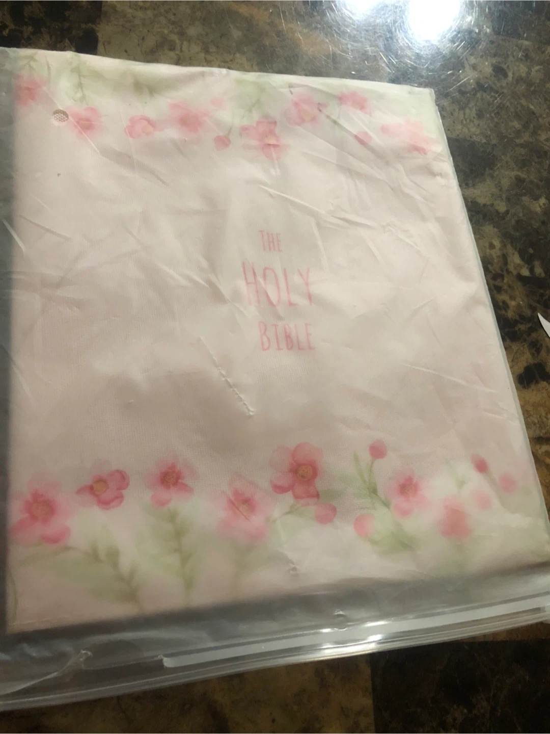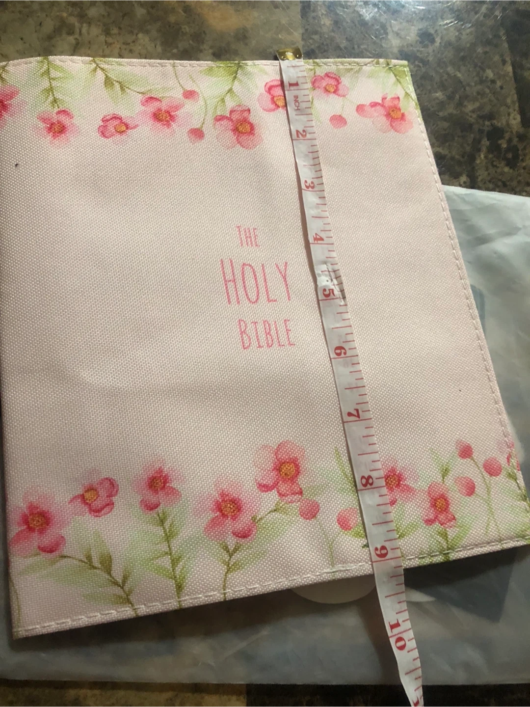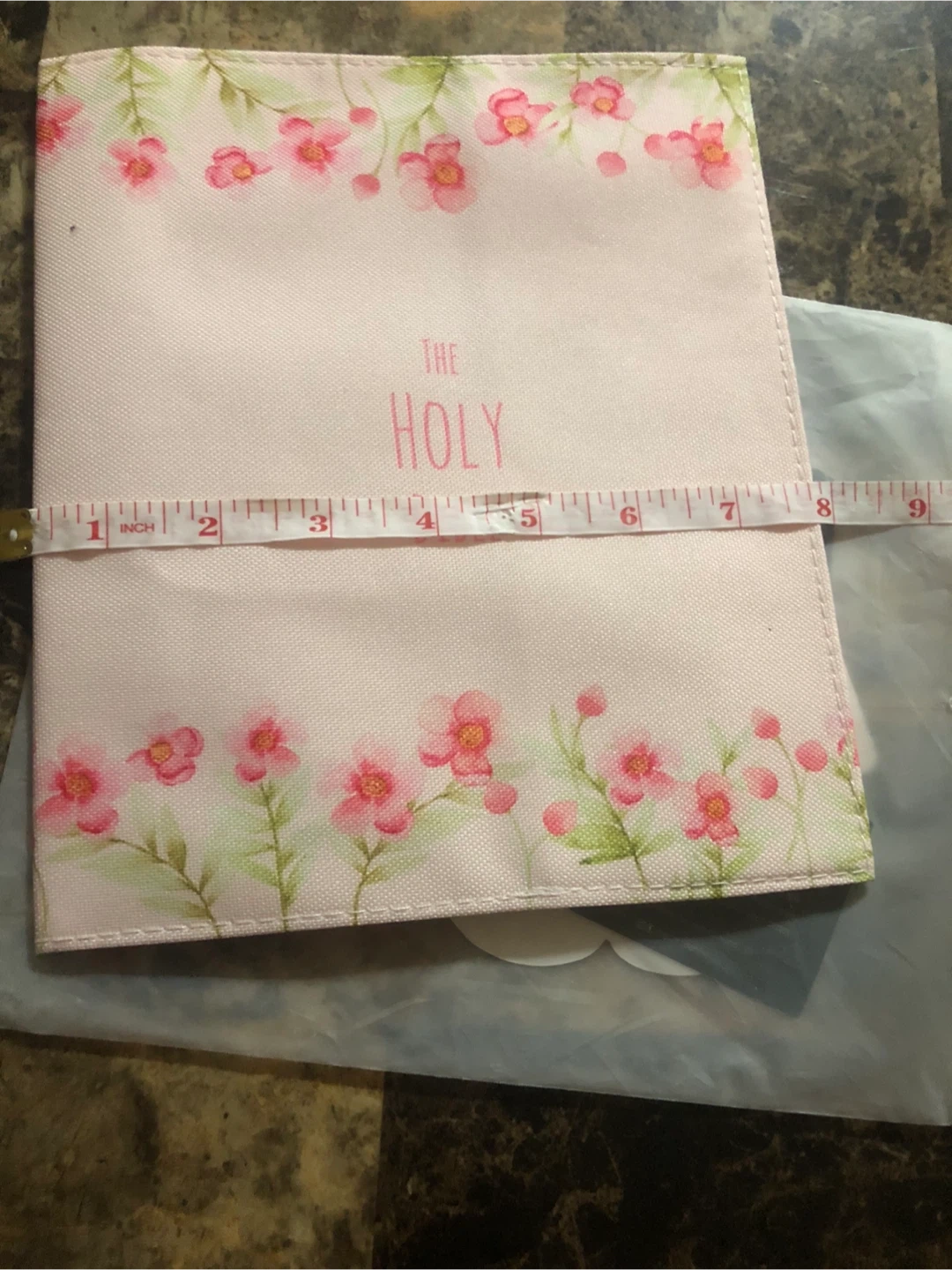 Selling a new pink Holy Bible cover with a floral design. The cover measures approximately 9 inches in width and 10 inches in height. It’s in great condition and ready to protect your Bible. The greatest gift you can give to someone.
