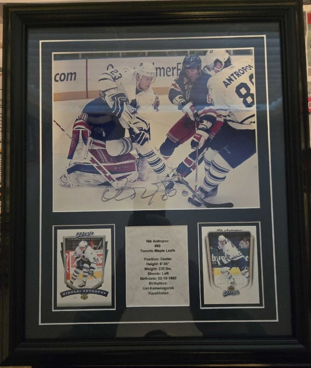 Toronto Maple Leafs Nik Antropov Autographed framed picture. Like new condition, No marks or cracks. $50 pickup is in Binbrook. 17 inches long by 14 inches wide. Let me know if you're interested!