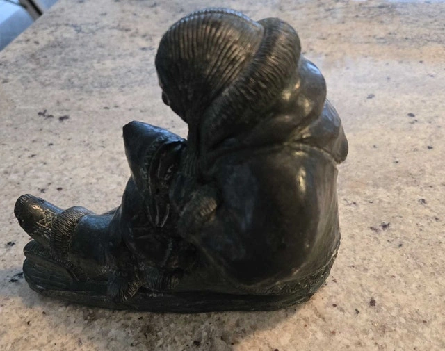 The Wolf Soulptures original soapstone carving. Very good condition other than small chip on back of hood. 7 inches long by 6 inches tall. $80 pickup is in Binbrook.