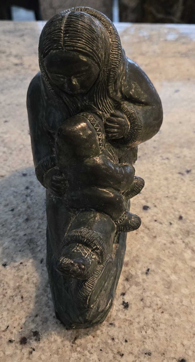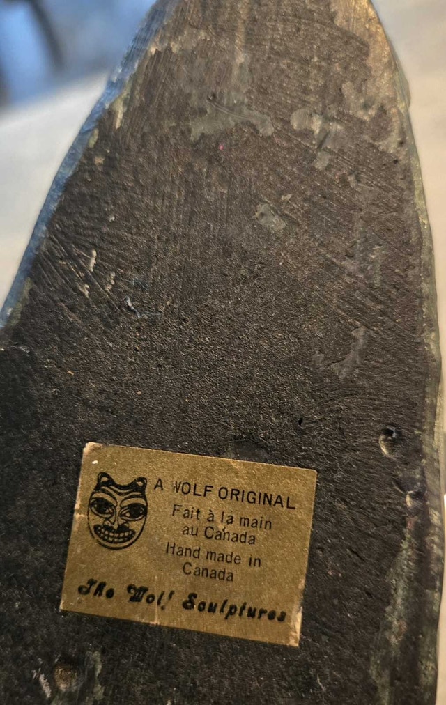 The Wolf Soulptures original soapstone carving. Very good condition other than small chip on back of hood. 7 inches long by 6 inches tall. $80 pickup is in Binbrook.