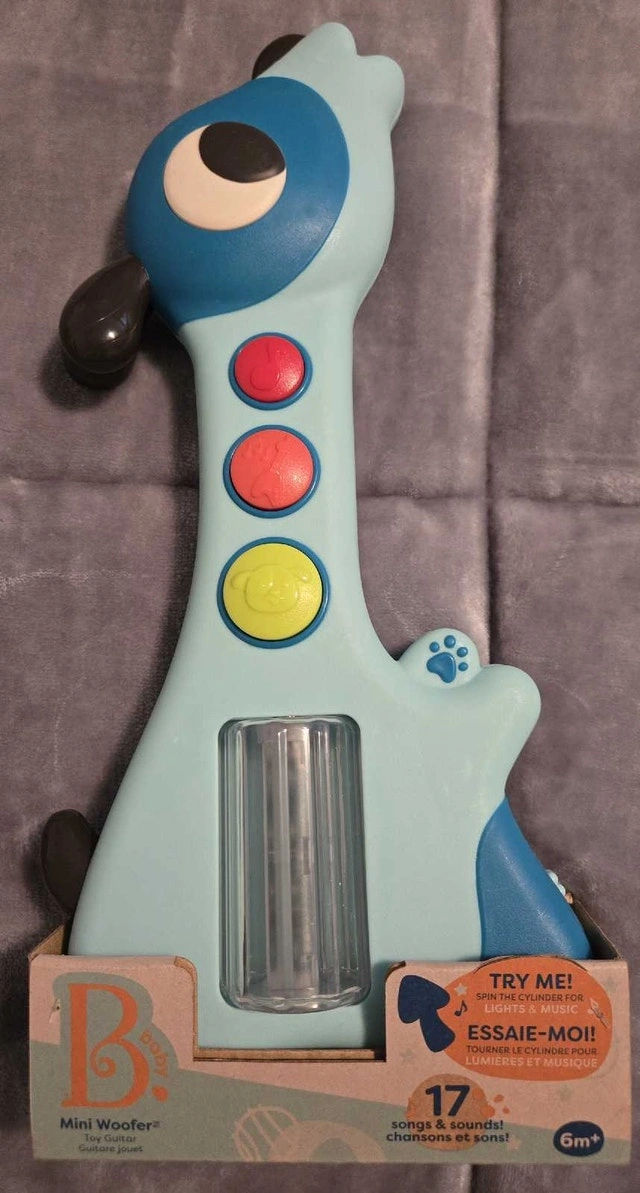 Brand new in original packaging Mini Woofer Toy Guitar, $25 pickup is in Binbrook. Toy Guitar: A mini dog guitar with songs, sounds, and musical modes to explore! (3 AAA batteries are included.) Musical Discovery: Kids can strum freely, hit the buttons, and choose between 3 modes fun songs, guitar riffs, and puppy tunes! Fun Jam Sessions: Spin the light-up cylinder to advance the song or play a silly sound! Developmental Toy: Playing this small guitar improves fine motor skills and develops cognitive skills. For Sale By: Owner