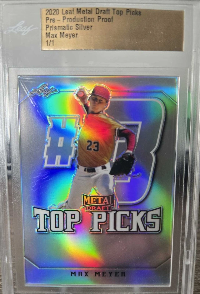 2020 Leaf Metal Draft Top Picks Production Proof 1 of 1 Max Meyer Miami Marlins Pitcher. Card is factory sealed from Leaf and mint condition. $100 pickup is in Binbrook. More Info: Sports Collectibles
