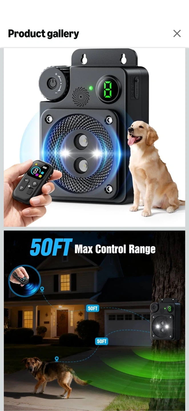 I'm selling a new N11 Ultrasonic Dog Repeller. It features smart auto mode, large anti-barking range, and is waterproof. It's also dog-safe and has a 50ft max control range. The box and user manual are included!