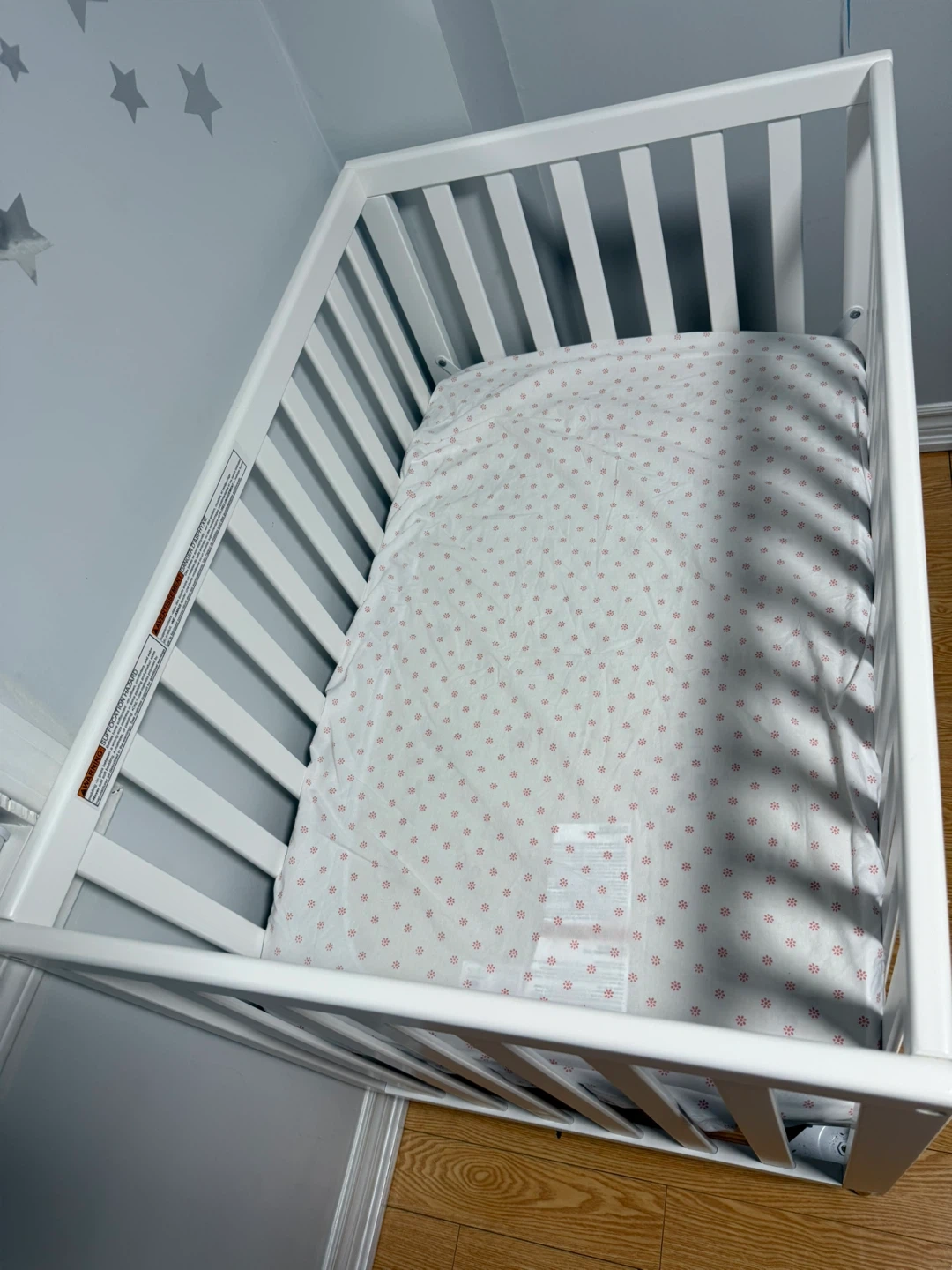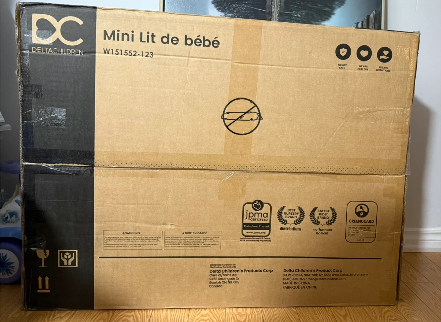 Selling a Delta Children mini crib in white! It's in great condition and comes with the mattress and box.Perfect for smaller spaces or as a secondary crib and it’s never ever been used.