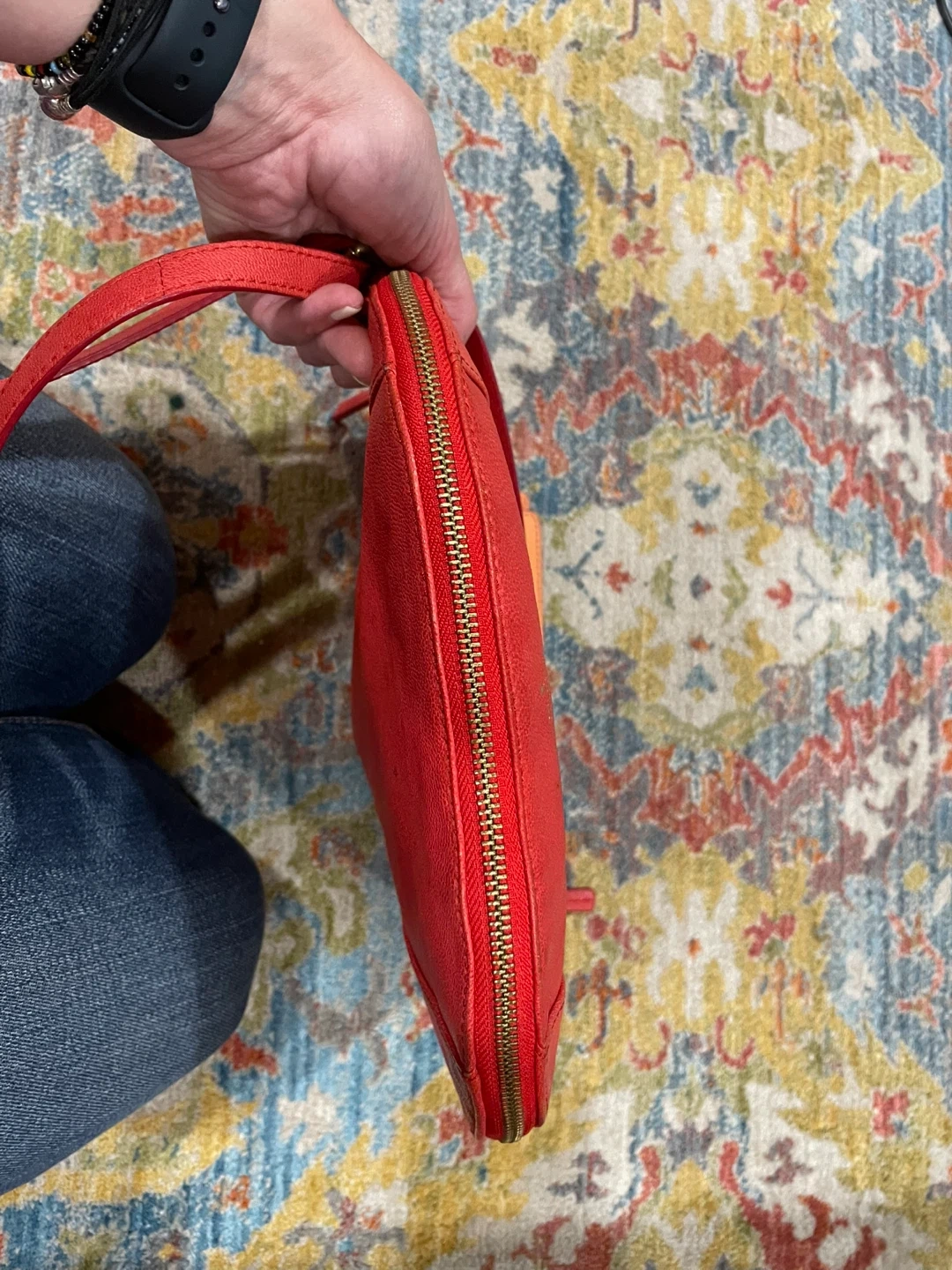 Here's a stylish red leather crossbody bag from Fossil! It's in great condition and ready for a new owner. Perfect for carrying your essentials while keeping your hands free