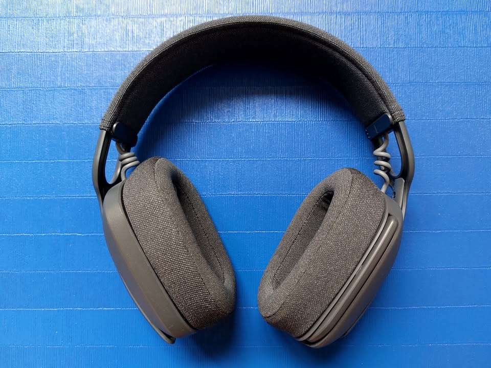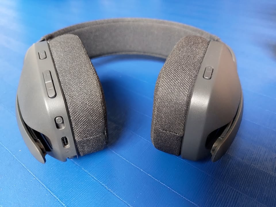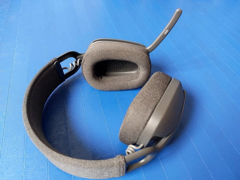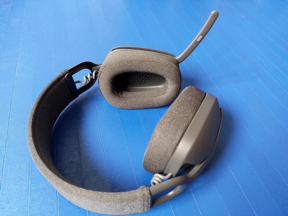 This is a lightweight, unpretentious wireless headset, perfect for VoIP and video calls at the office. Directional microphone with fold-away boom arm. Buttons for Power, Call, Mute, Play/Pause, Volume.