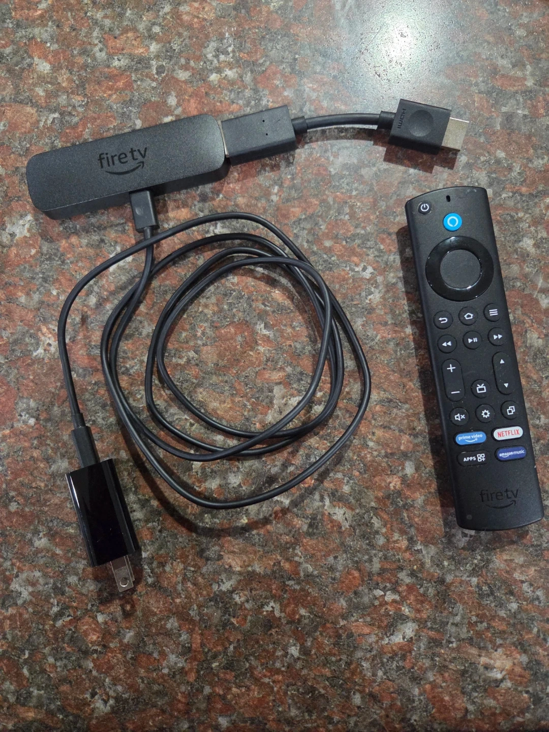 Selling a used Amazon Fire TV Stick with its remote. It comes with the power adapter and HDMI cable. Perfect for streaming your favourite shows and movies!