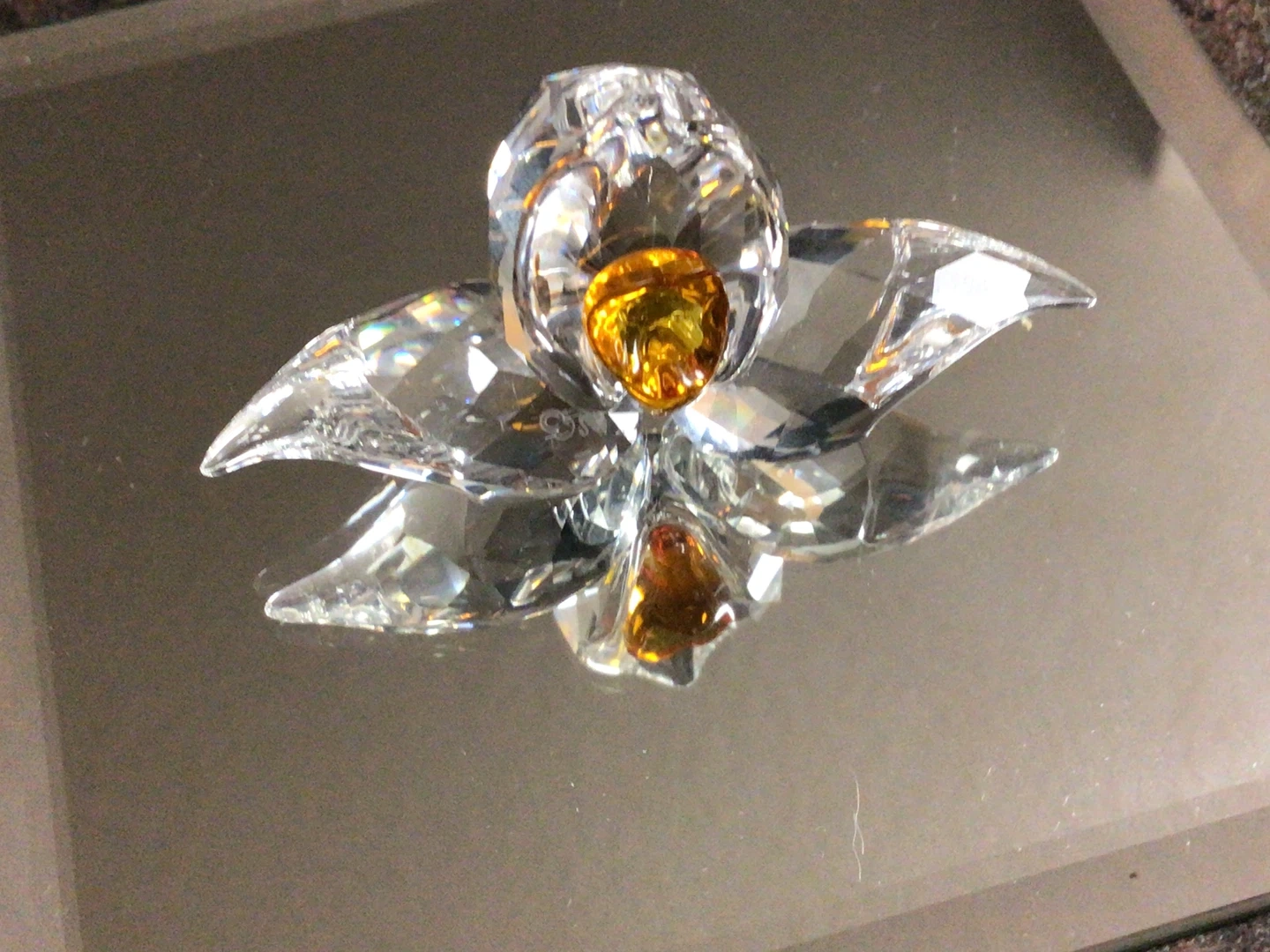 Here's a beautiful Swarovski crystal flower figurine! It's in great condition and ready to add a touch of sparkle to your home