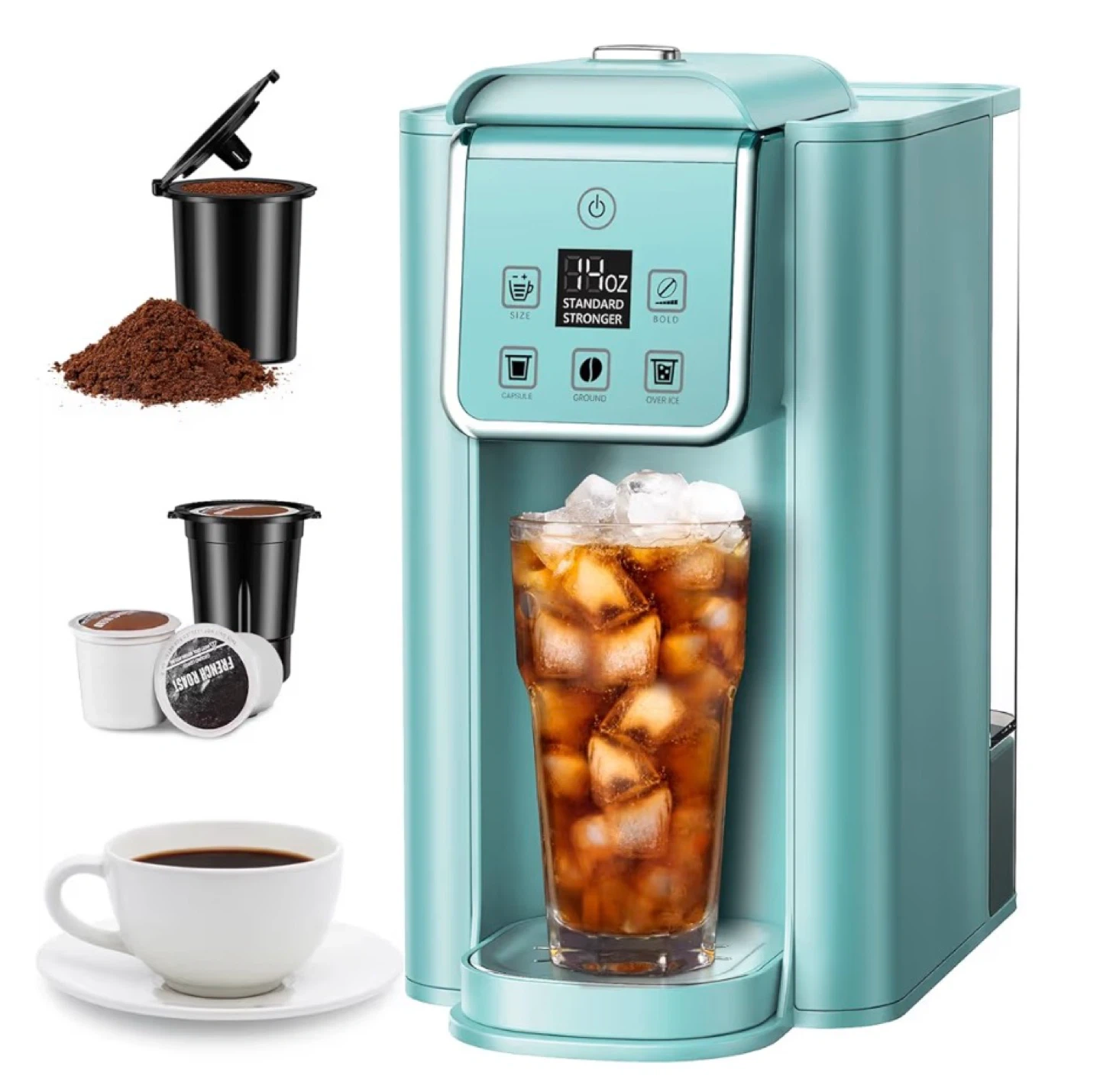 ☕ 3-in-1 Iced Coffee Maker KC101B – K-Cup & Ground Coffee, Blue