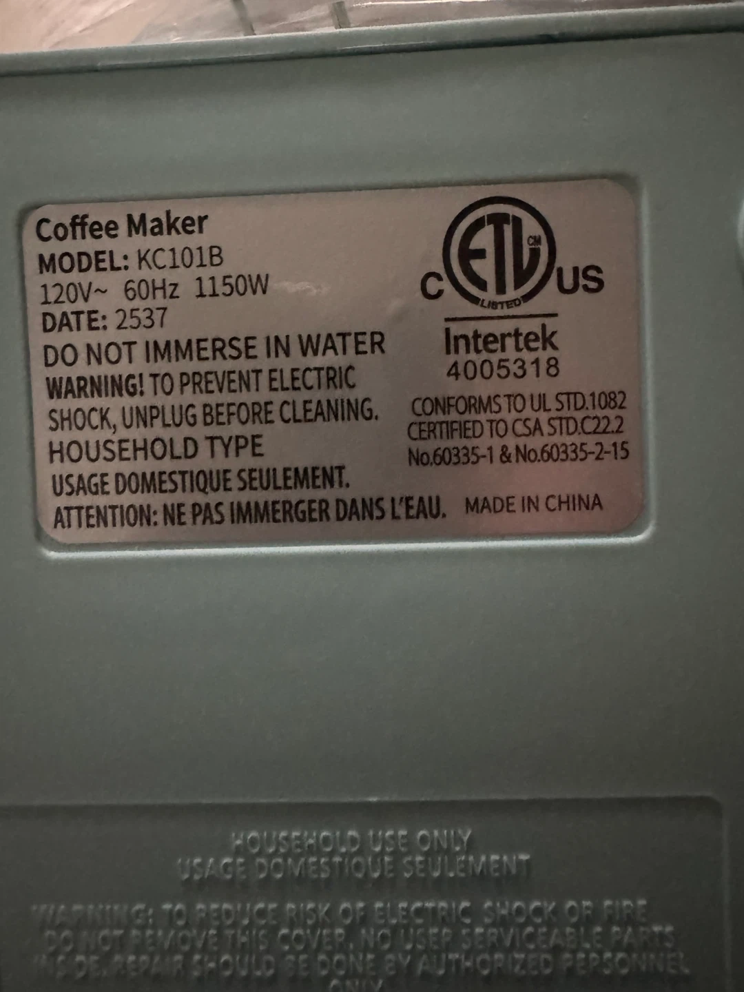 • Power: 1150W, 120V