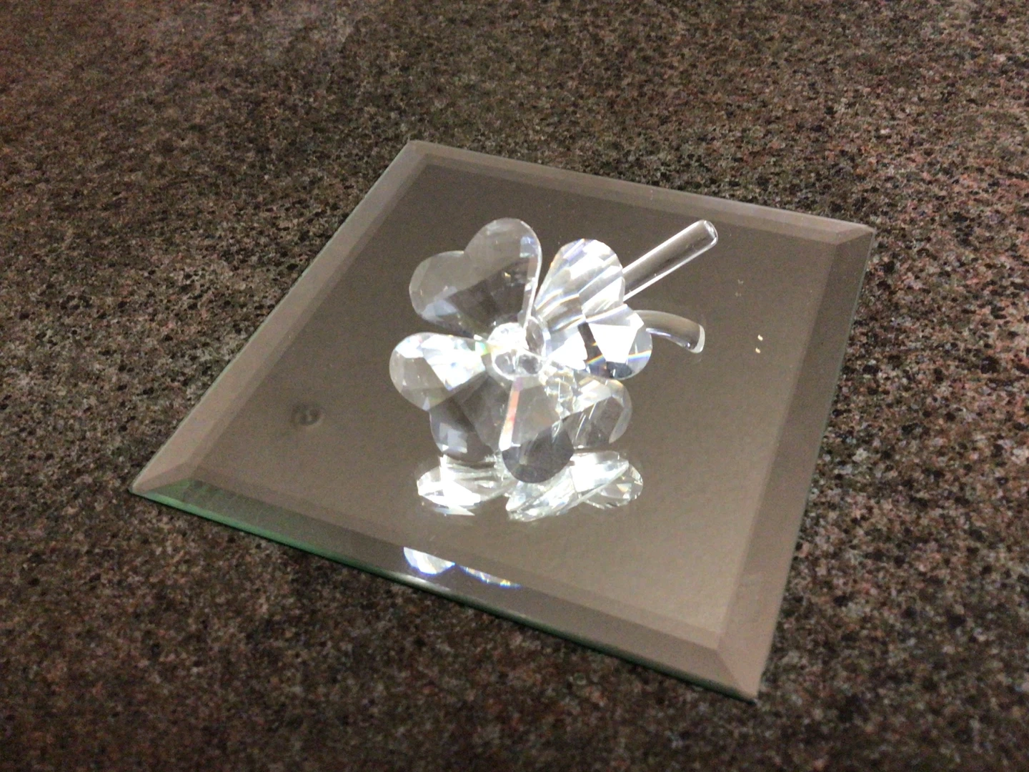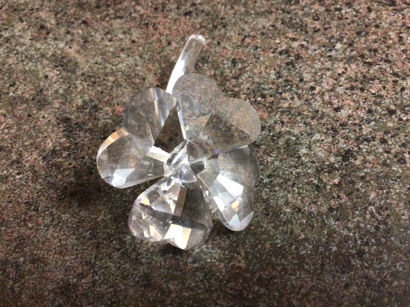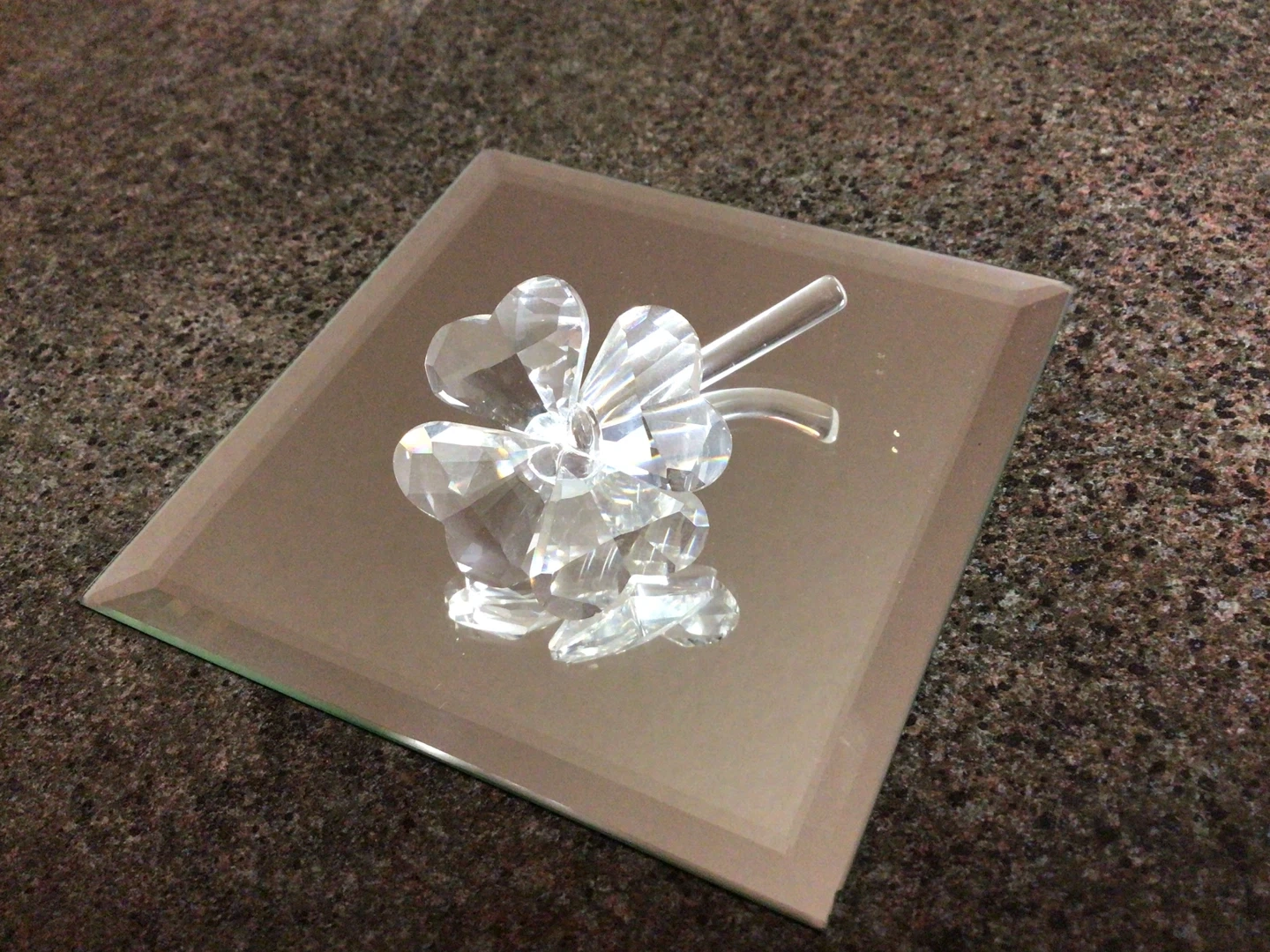 A lovely crystal four-leaf clover decoration, perfect for adding a touch of sparkle to any room! It's in great condition and ready to bring some good luck to its new home